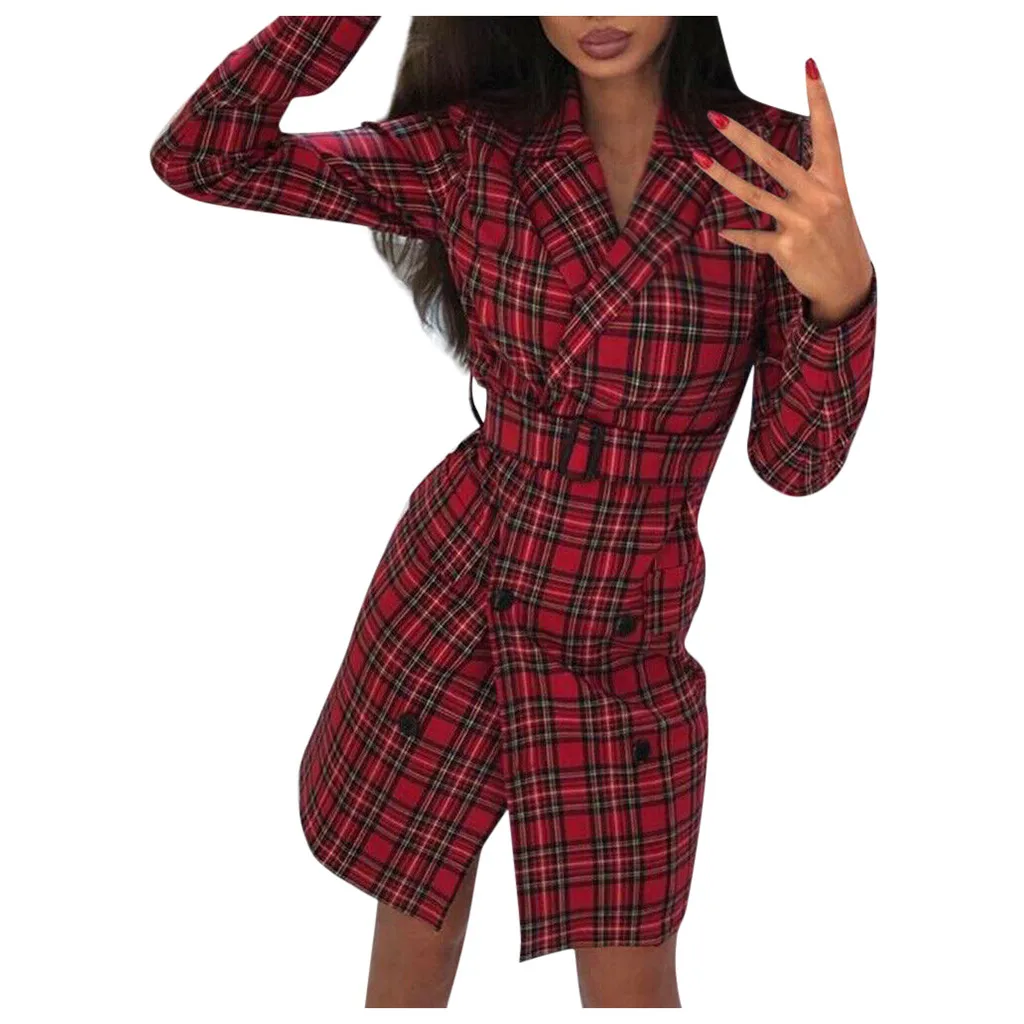 Лидер продаж, платье в клетку с принтом, женское винтажное платье в клетку с длинным рукавом, женское повседневное рождественское платье средней длины, одежда в классическом стиле #7