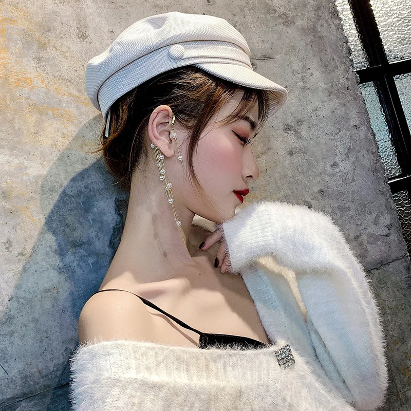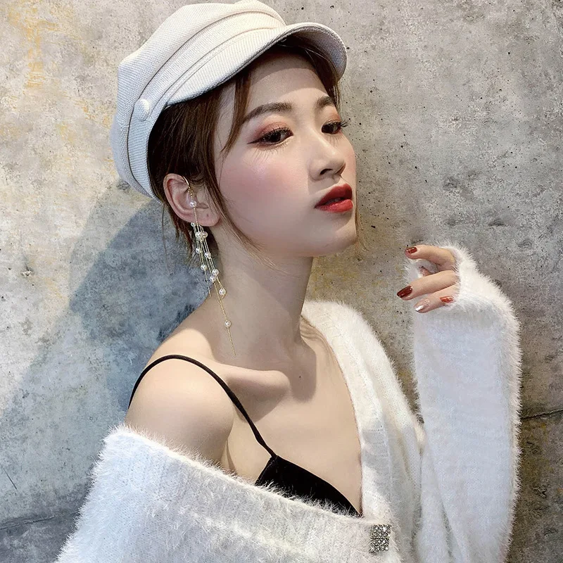 Серьги-клипсы женские с искусственным жемчугом и кисточками