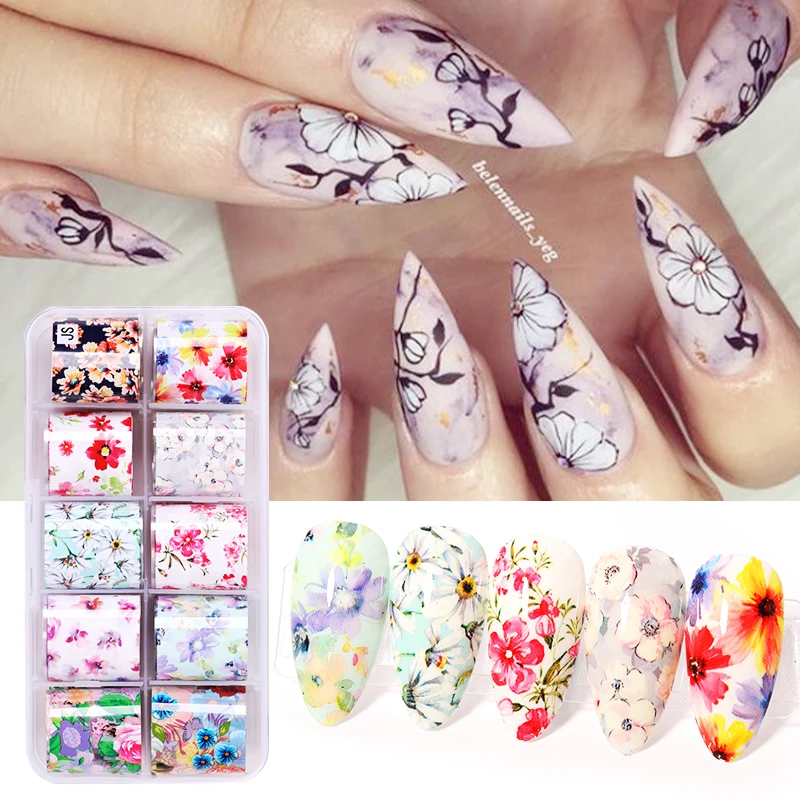 Переводные наклейки для ногтей, набор фольги, цветы, наклейки в форме бабочек, розовые, весенние, бумажные, мраморные, дизайнерские Типсы, украшения для ногтей