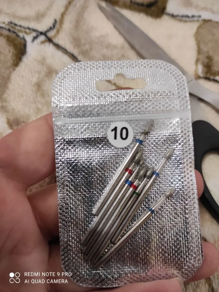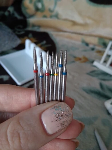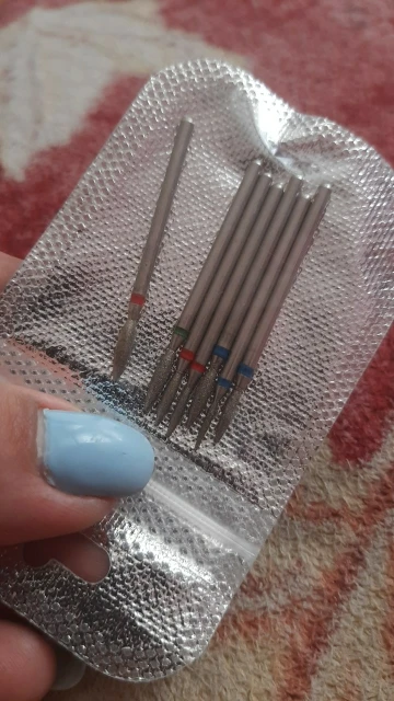 Не знаю, что и сказать про качество, так как в работе ещё не пробовала. Если вы обратите внимание на образивность, то заметите, что у каждого цвета они разные. У жёлтого меньше, у красного средне, больше у синего. На фото постаралась передать чётче. Заказывала 25 августа, получила 12 Сентября (Татарстан, Арск). По мне так, я довольна. У нас я одну фрезу брала в районе 200 рублей, здесь же все за 136,59 руб., да ещё и 7 штук. Я очень советую данный магазин.