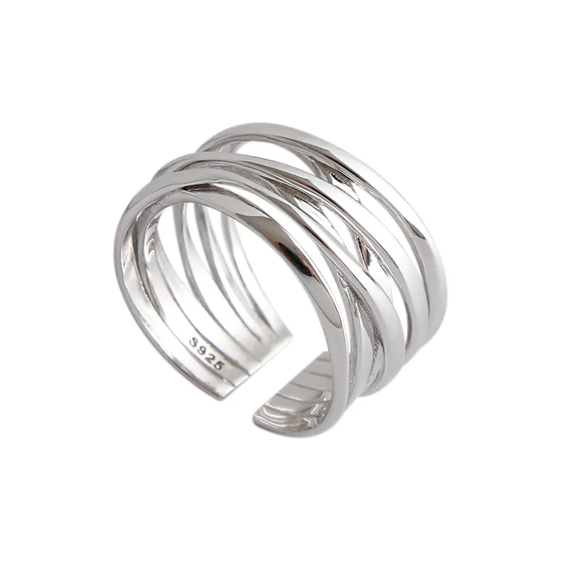 Кольца XIYANIKE серебристого цвета, креативные Многослойные Геометрические кольца ручной работы для женщин, размер 17,2 мм, регулируемые