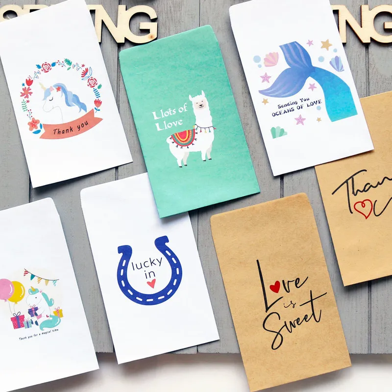 50 шт Мини крафт бумажные пакеты для подарков Единорог спасибо мале...
