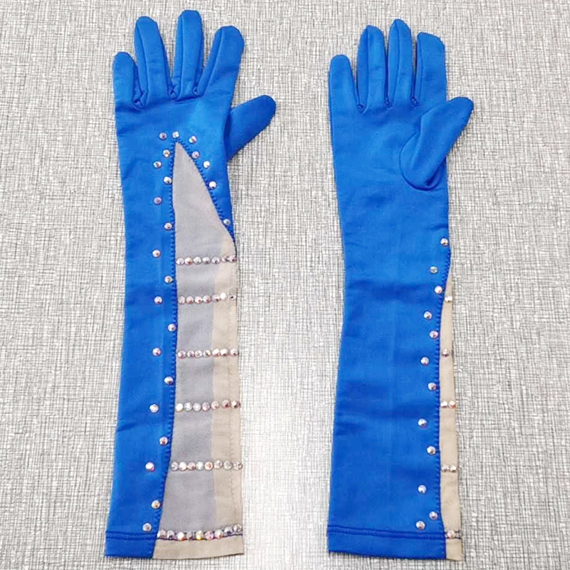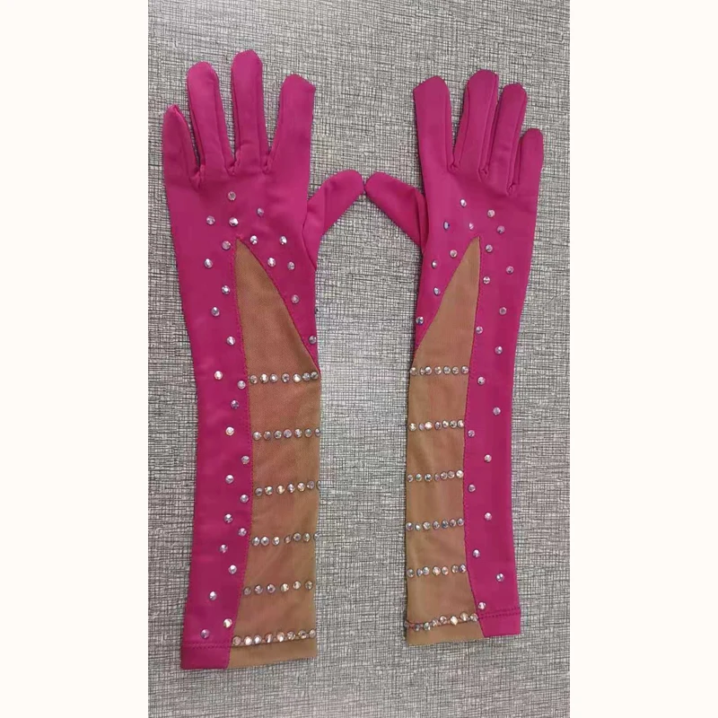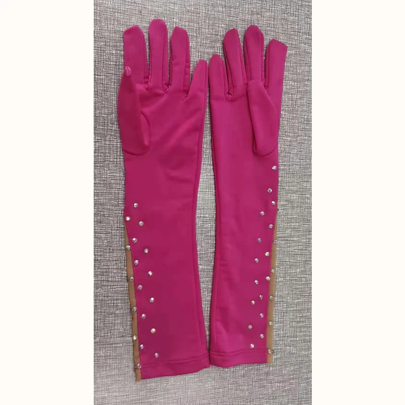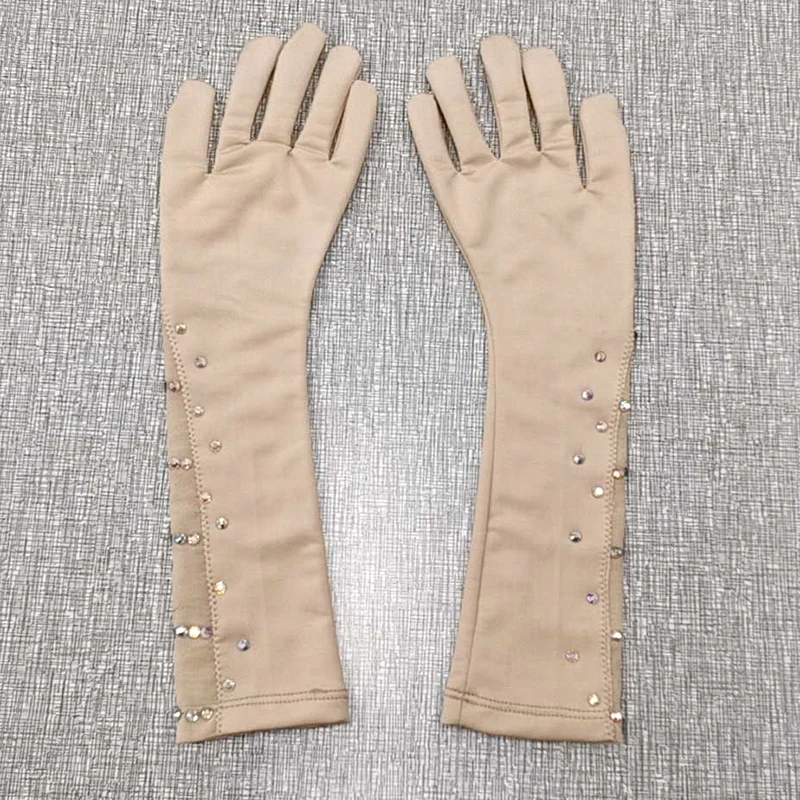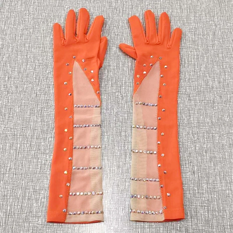 Детские длинные перчатки без рукавов для фигурного катания, взрослые перчатки из полиамидного волокна, блестящие стразы