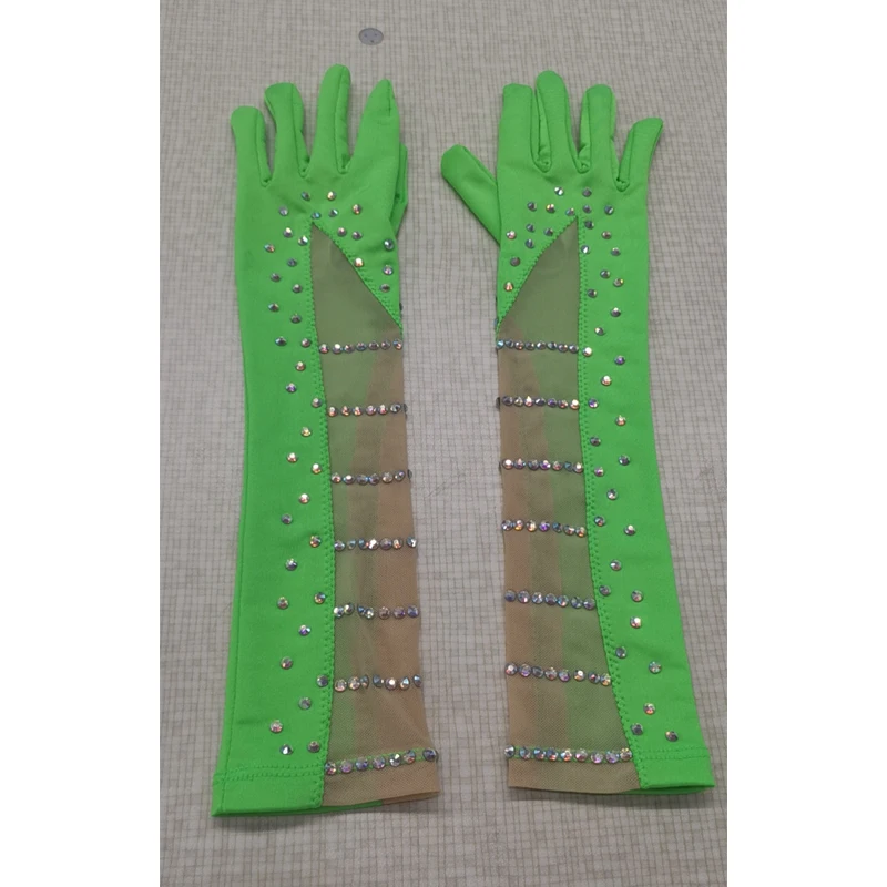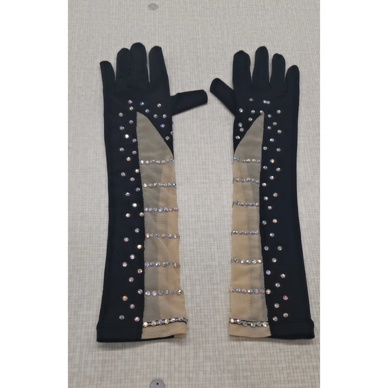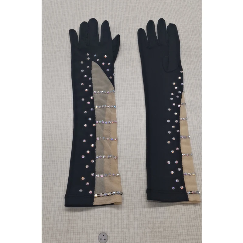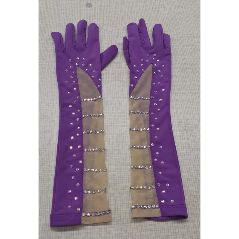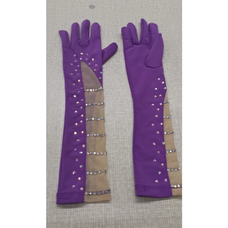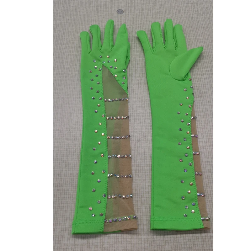 Детские длинные перчатки без рукавов для фигурного катания, взрослые перчатки из полиамидного волокна, блестящие стразы