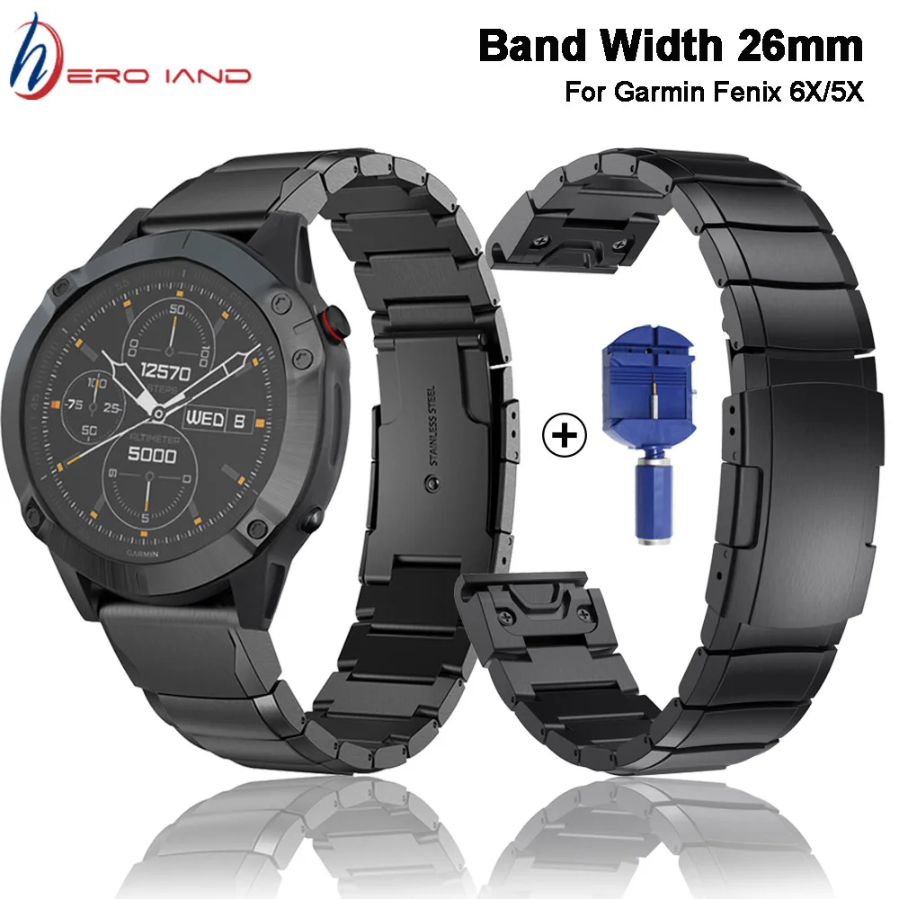 26 мм Высококачественный ремешок из нержавеющей стали для Garmin Fenix 6X 5X Plus MK1 D2 Quickfit Установите металлический ремешок для часов Ремешки Correa