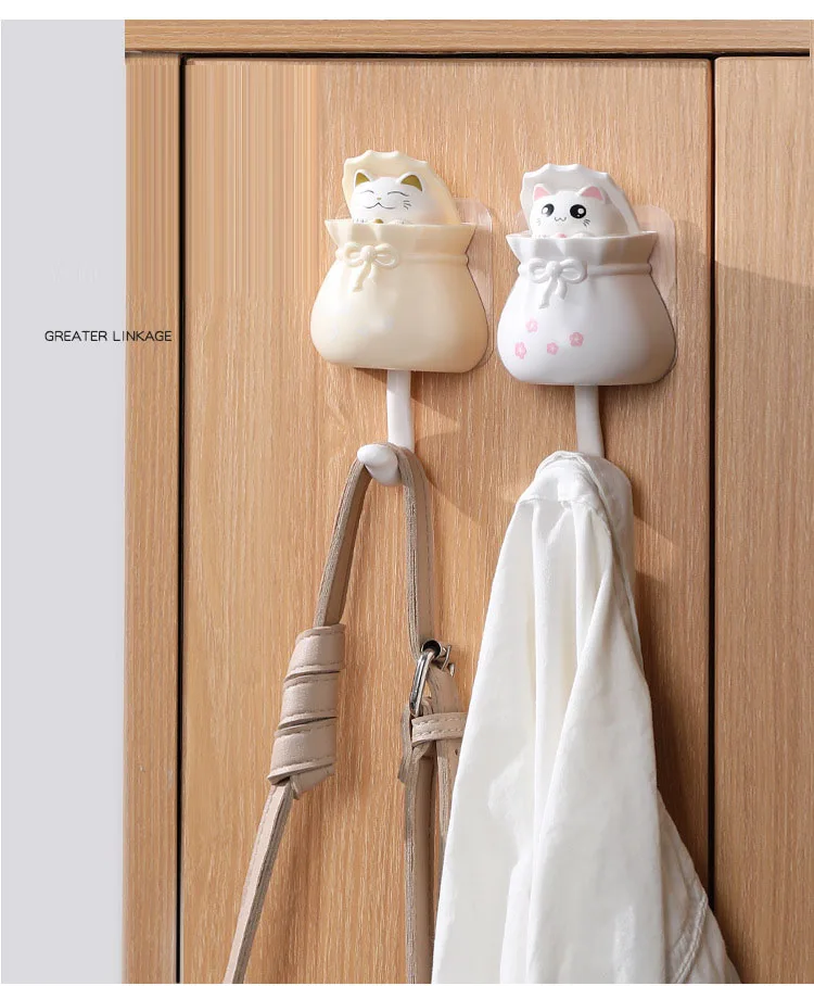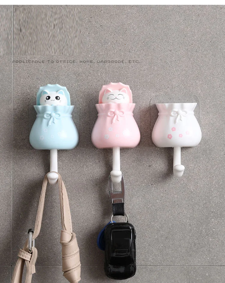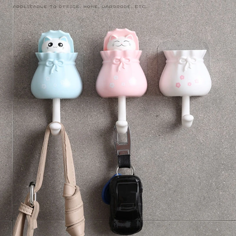Крепкий липкий крючок Lucky Cat, держатель для ключей, настенные дверные вешалки, крючки для ключей, зонтиков, полотенец, крышек, пальто, стеллаж для хранения, домашний декор