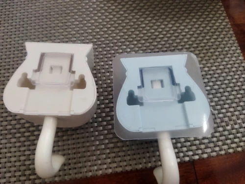 They seem ok but I have not tried using them yet. They took 24 days from ordering to arrive. The packaging got beaten up in the mail but the hooks are undamaged. They're bigger than I thought, which means they're also heavier. The package shows that the sticky plastic is separate, you place it on the wall, and then stick the hook to it. However, the plastic is already firmly attached. Also the plastic is bigger than the hook so you will see it. I don't think cutting the plastic down would be a good idea as that will leave less support. It seems like you could attach a new sticky material if necessary.