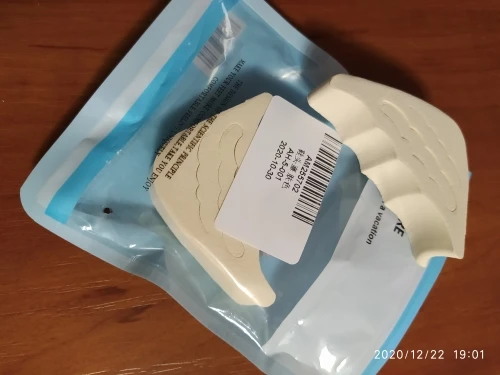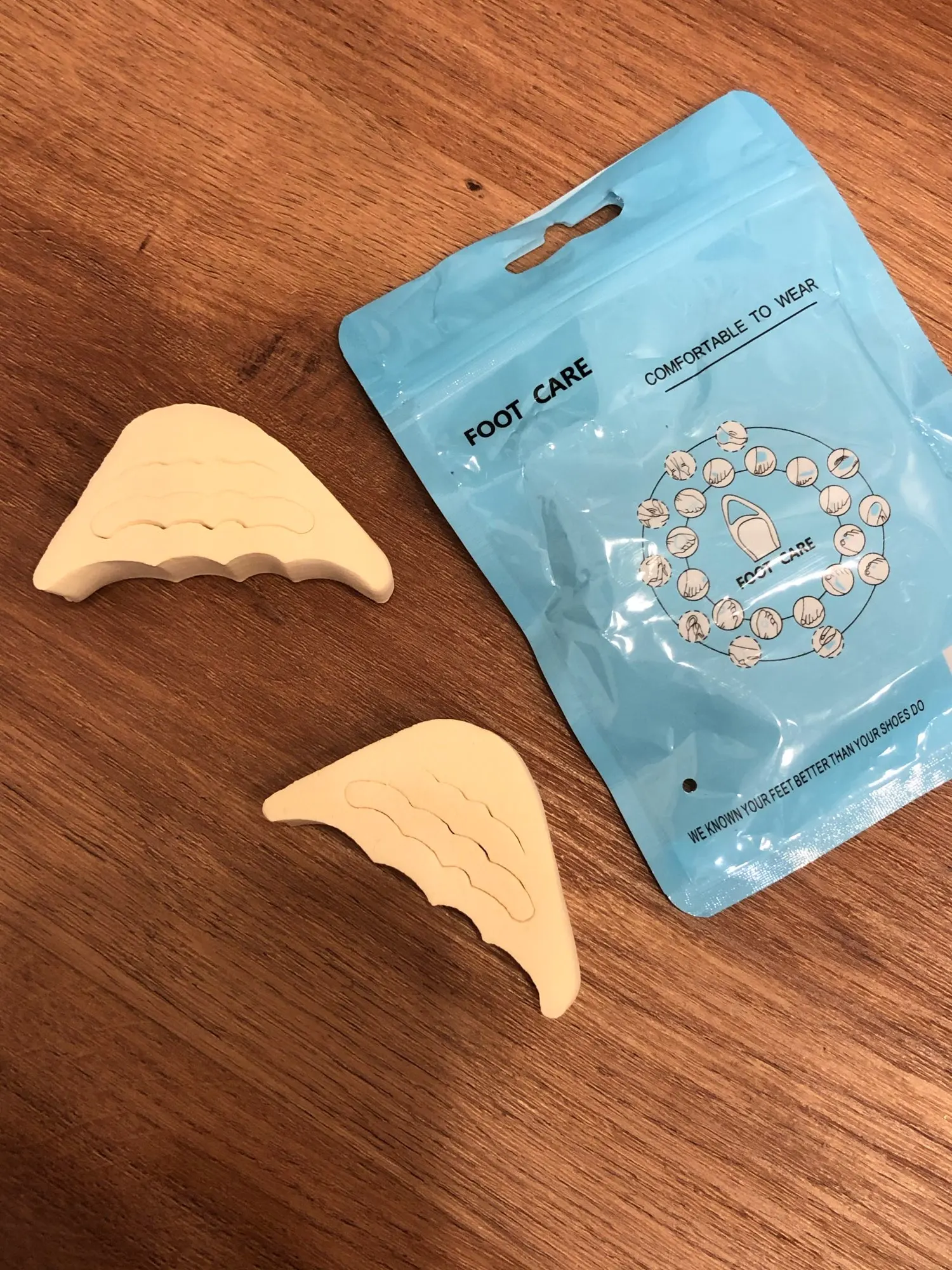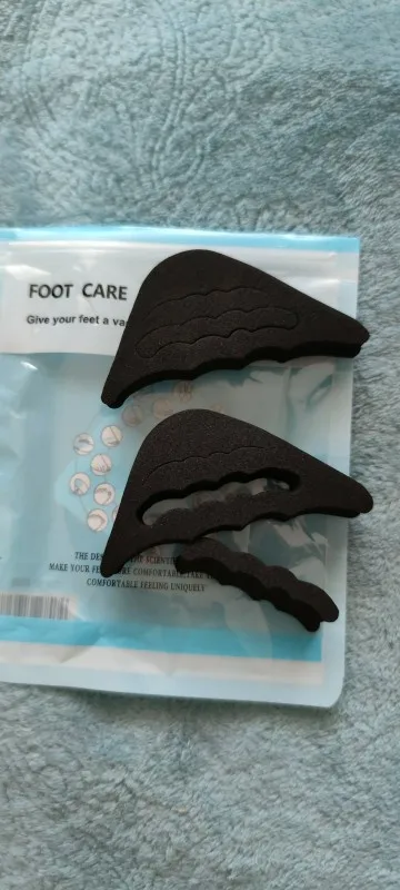 Какие полезные, эти штуки! В меру мягкие и пружинистые. При необходимости можно стирать. Это скорее для тех, у кого туфли с очень острым носком или немного велики по размеру. В отличие от ваты, с этими штуками, пальцы отдыхают. Если для кого-то покажется слишком огромной эта приспособа, то можно ножницами или канцелярским ножом, укоротить.