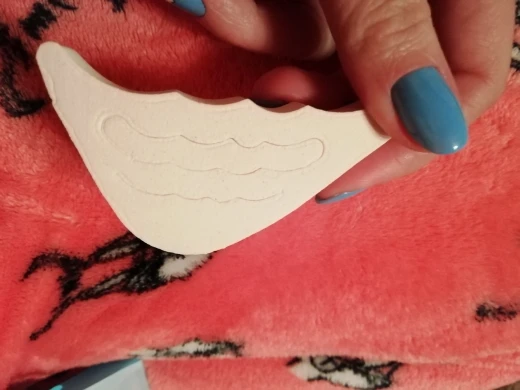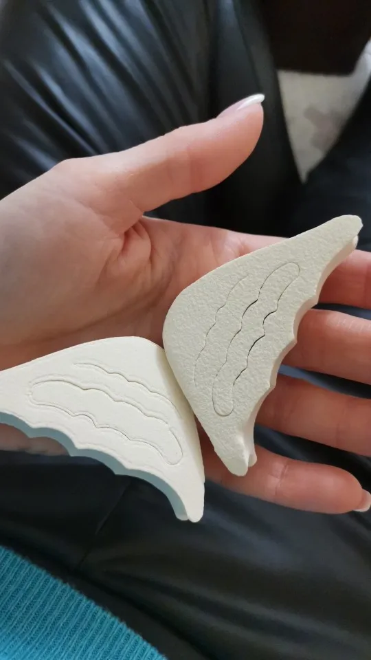 Материал мягкий и имеет форму, как описано (я ожидал, что верх будет точнее). Наполнение очень сложно вынуть, и он оставляет некоторые материалы в изделии, как на фотографиях, ничего, что мешает удобству. Как правило, товар соответствует описанию. Я не мог использовать его на высоком каблуке, потому что он довольно большой, и он сделал обувь слишком узкой. Я использую его в качестве наполнения для обуви, которая слишком большая, он оказался идеальным для него. Я могу купить его снова.