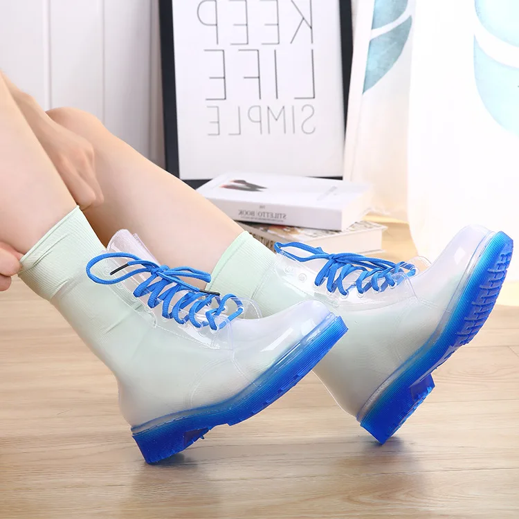 Женские непромокаемые ботинки; Водонепроницаемая женская обувь на шнуровке; Прозрачные яркие цвета; Уличная женская обувь; 559