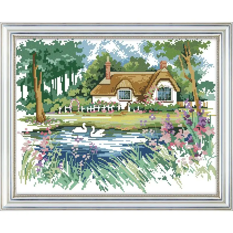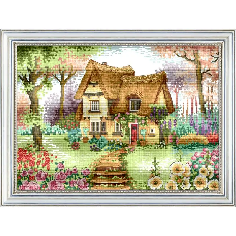Набор для вышивки крестиком с рисунком деревенского сада, пейзаж с коттеджем, 14 карат