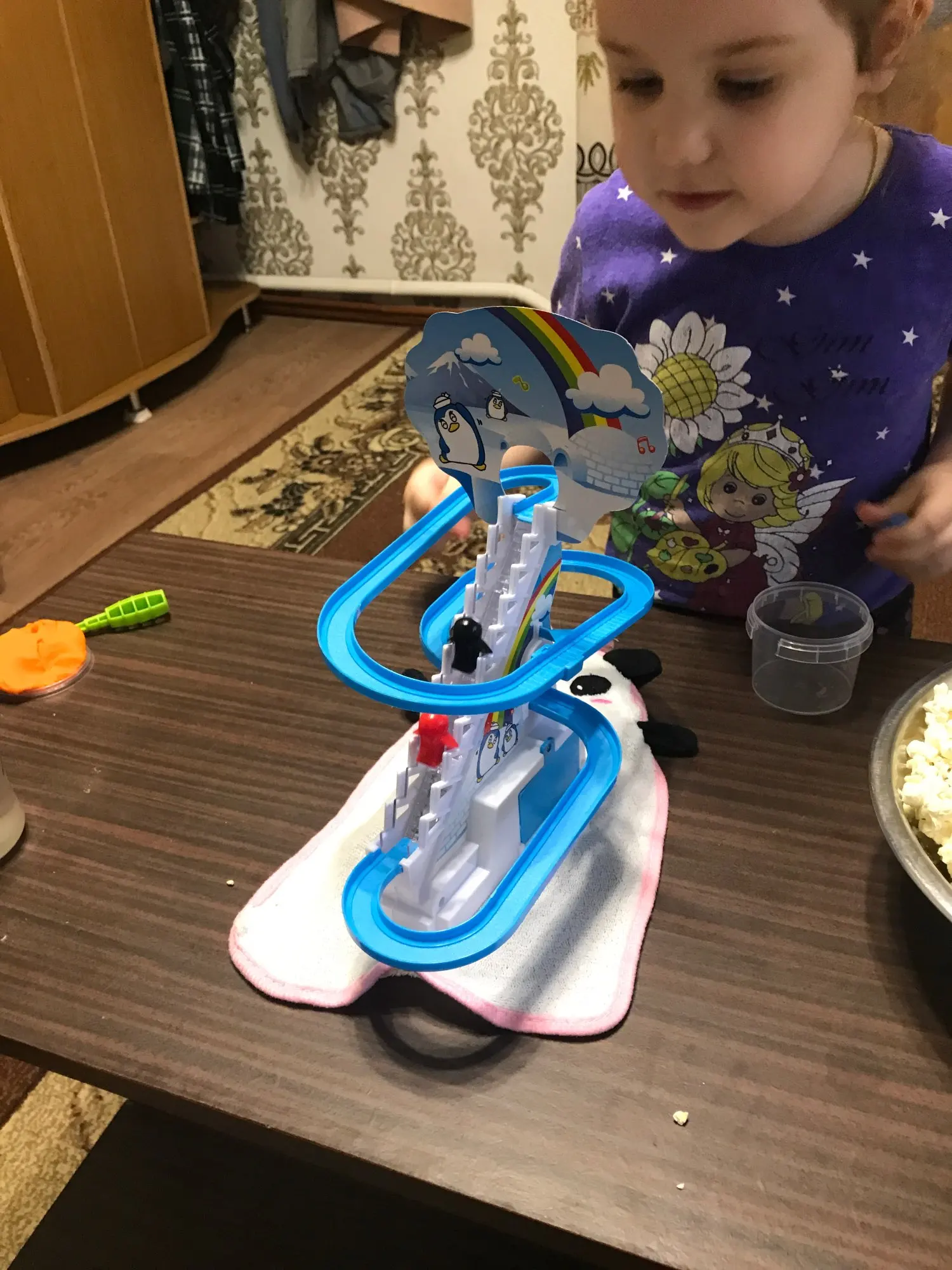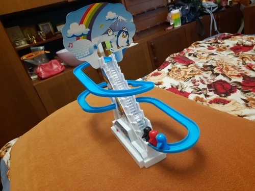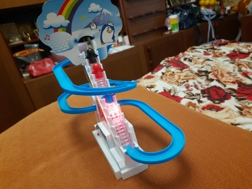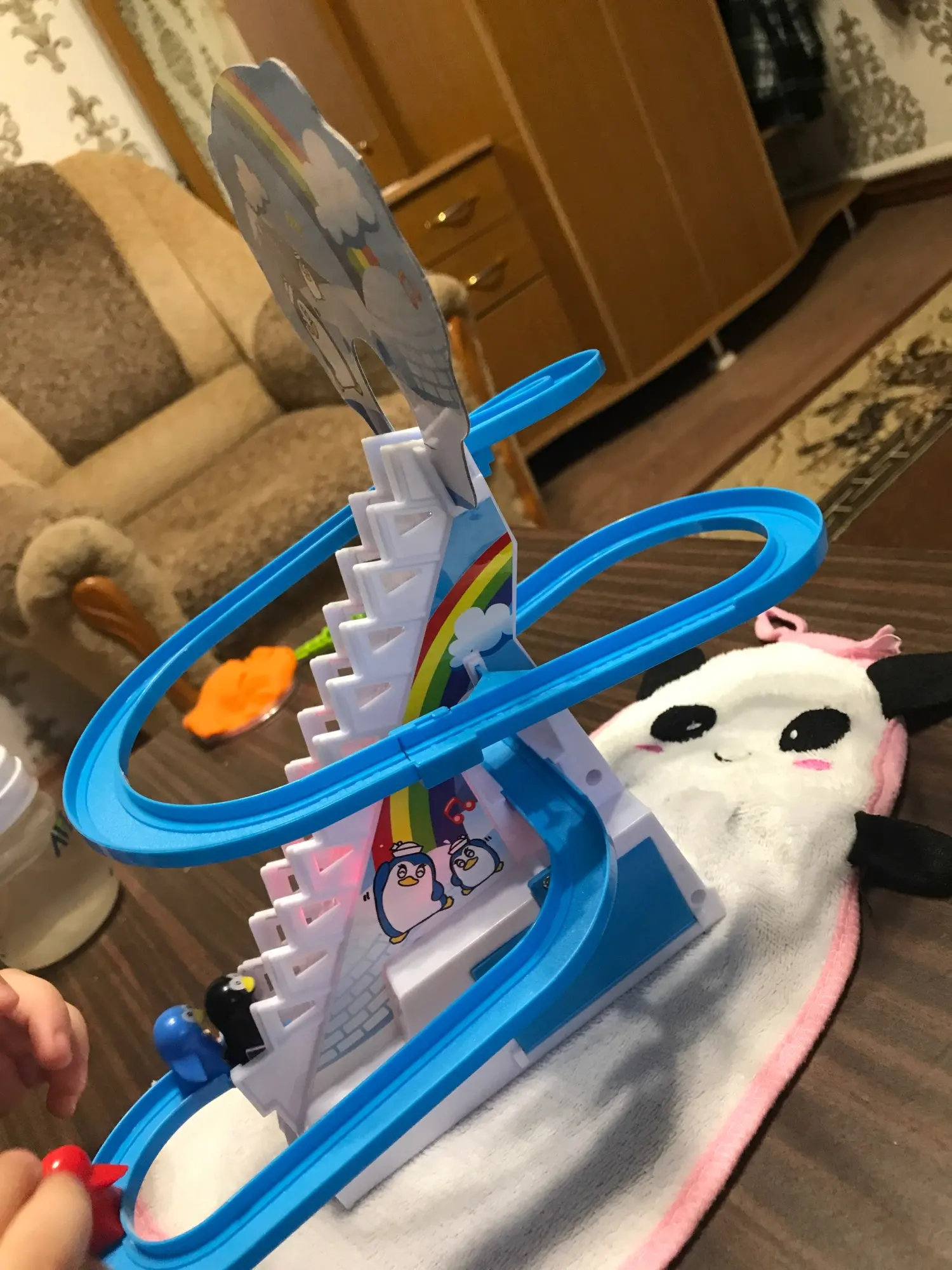 прислали не тот товар, заказала динозавра, а пришли пингвины, так их ещё и подталкивать надо, сами на лестницу не лезут, с неё сказываются, застревают. в комплекте батареек нет, возможно, и не должно быть, так, к слову пришлось. открыла спор, вернула 2/3, так продавец до последнего тянул, спор решил алиэкспресс. такое себе, не советую