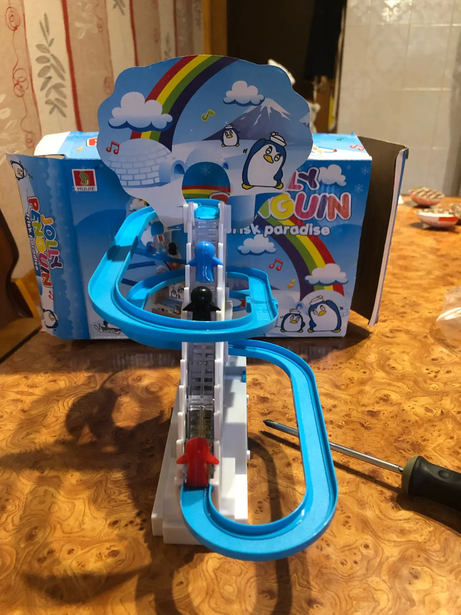 ожидание и реальность хаха маленький размер игрушки,ну это ладно очень громкая музыка,неровный пластик(из-за этого пингвинчики тормозят на полпути)