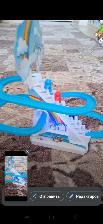 Товар соответствует описанию и своей цене. Мне приехал в мятой коробке но это не страшно. На удивление оно работает,инструкции нет нормальной и я с трудом рельсы собрала. Она ужасно громкая,ребенка скорее всего напугает,нужно динамик заклеить или провод подрезать. Но вцелом все соответствует описанию и ожиданию. Доставка в Украину три недели