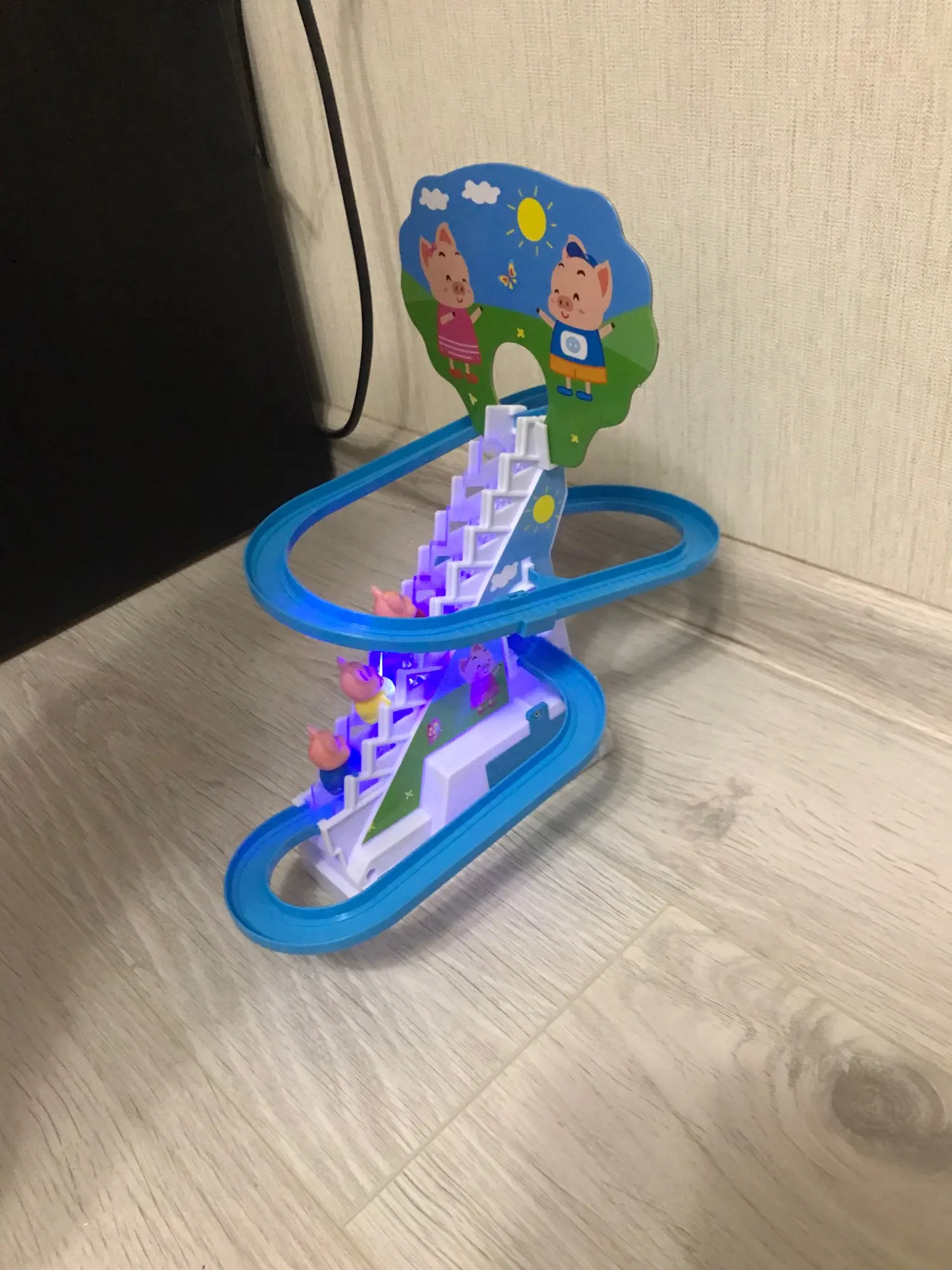 ожидали слегка большего размера. на 4ый раз включения,перестала лесенка поднимать-только мелодия.. все слабенькое, тонкое но пока не сломано))