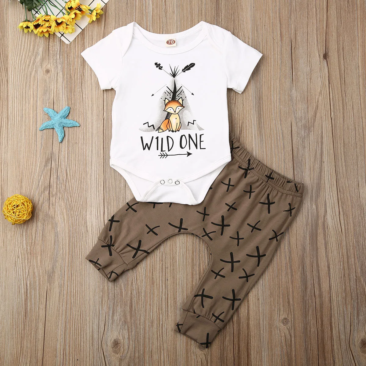 Летний комбинезон для новорожденных мальчиков и девочек с принтом лисы, длинные штаны, комплект одежды из 2 предметов, 0-18 месяцев