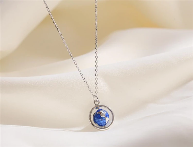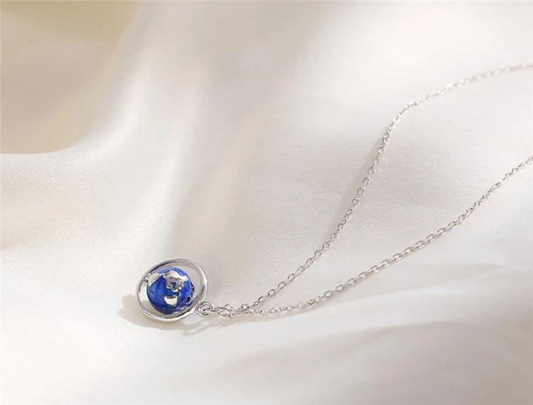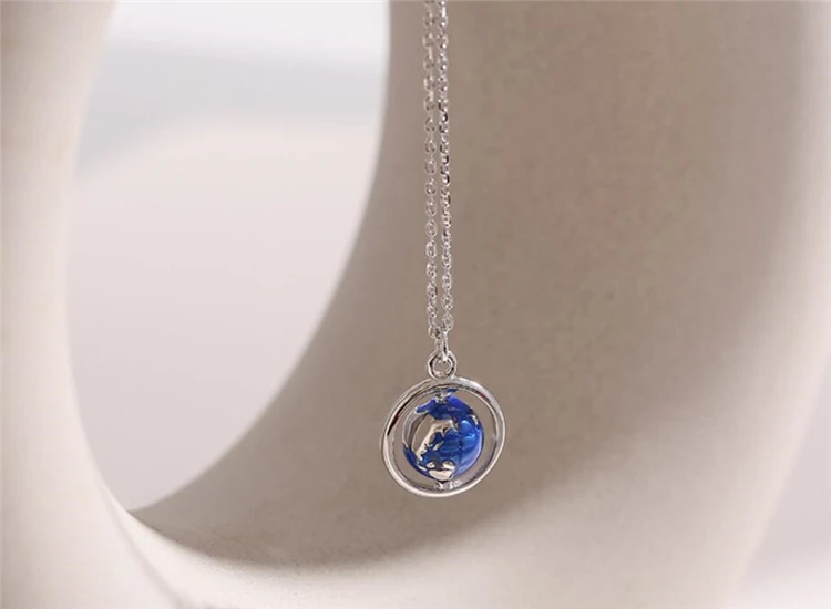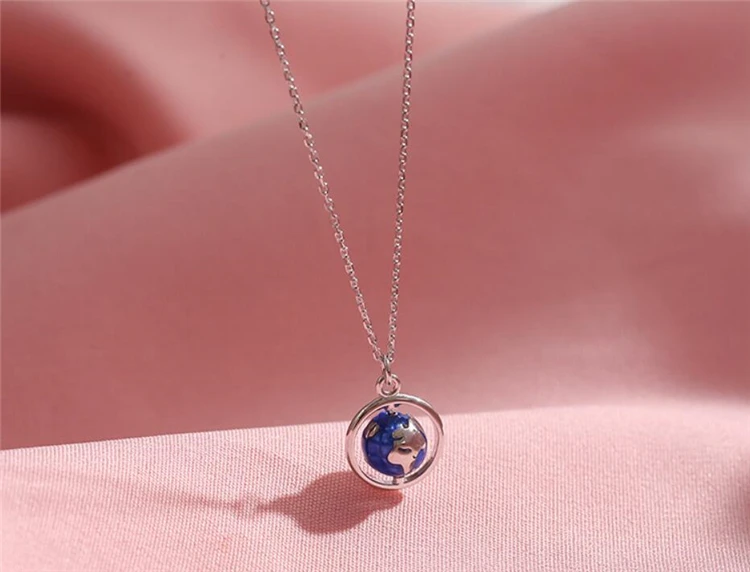 Женское колье с подвеской в виде шара и планеты из серебра 925 пробы