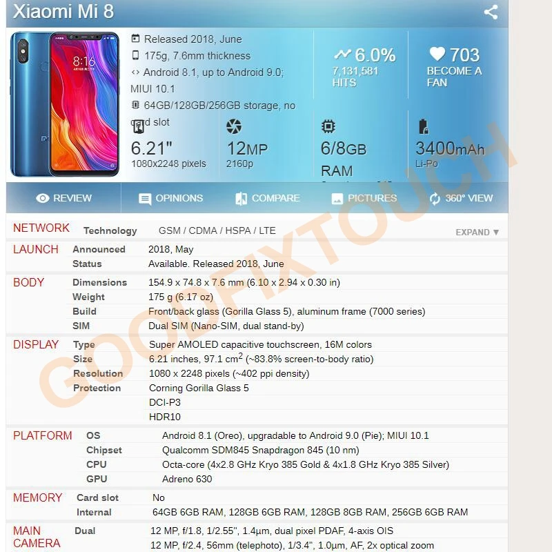 Номер моделиFor Xiaomi Mi 8