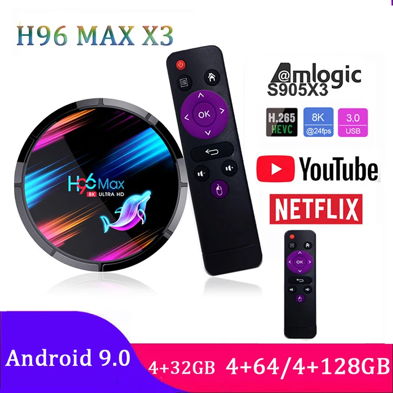 См²Большой Ёмкость для хранения:H96 Max X3 Android tv Box настроен с 4 Гб DDR3 DRAM и с 32/64/128 ГБ eMMC опцией хранения. Он приносит вам плавный кадров, чтобы вы наслаждались просмотром телевизора и свободно играть в игры.
