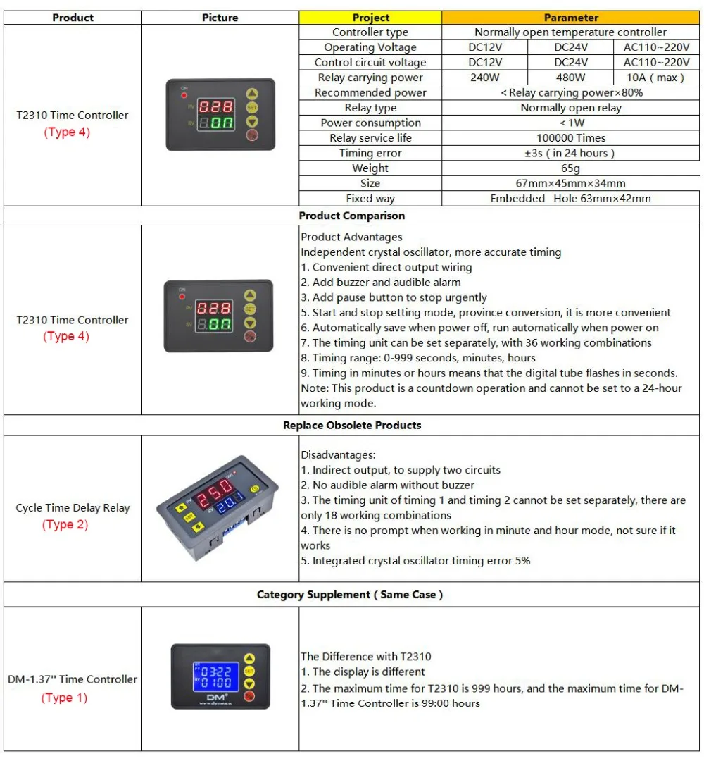 1 x T2302 12 В Модуль синхронизации реле таймера задержки, цифровой светодиодный двойной дисплей, цикл 0-999 часов, 20 А, Цифровое реле времени, Прямая поставка