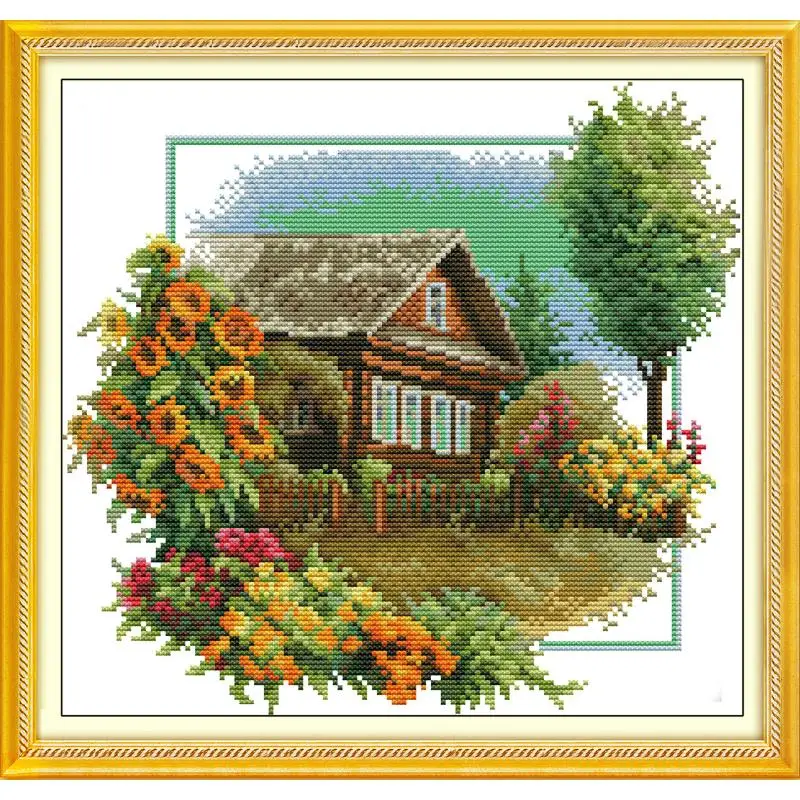 Набор для вышивки крестом с узором цветы и дом сад вилла 11CT и 14CT ткань для вышивания с принтом комплект для домашнего декора живопись