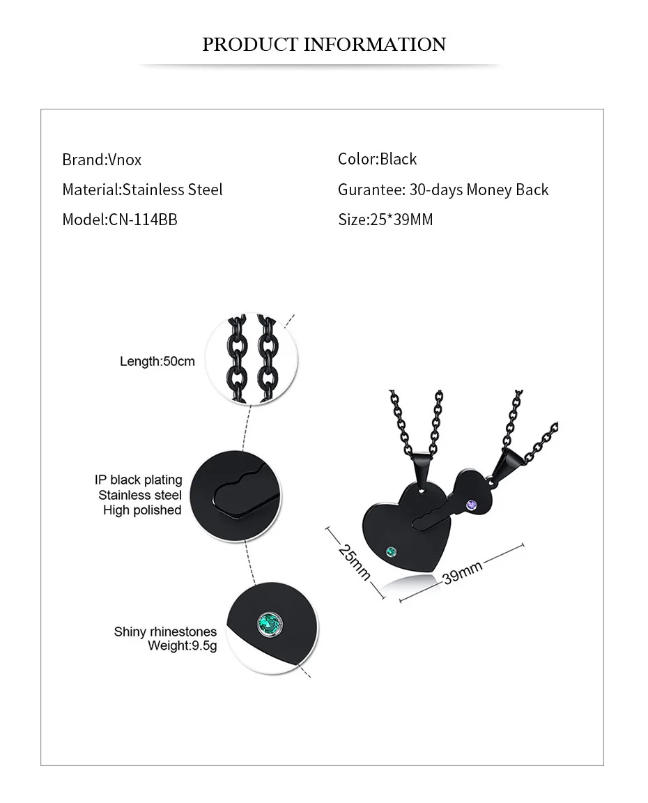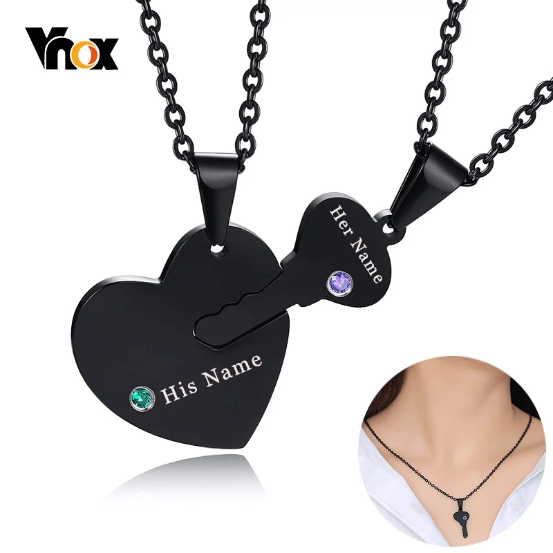 Набор парных ожерелий Vnox с камнями по месяцу рождения, персонализирующий его и ее имена