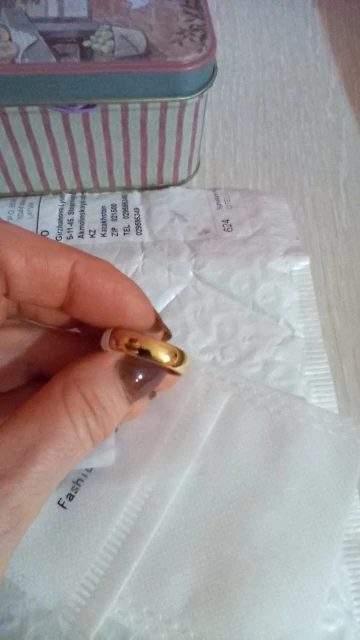 колечко очень классное,смотрится как хорошее золотое .к сожалению муж решил,что его 20 влезет в 19,8(ру размер).в идеале подошёл бы 11размер,поэтому,как снимать будет,не знаю)))доставка около месяца,получала через почтомат Халва вместе с другими заказами,очень удобно.