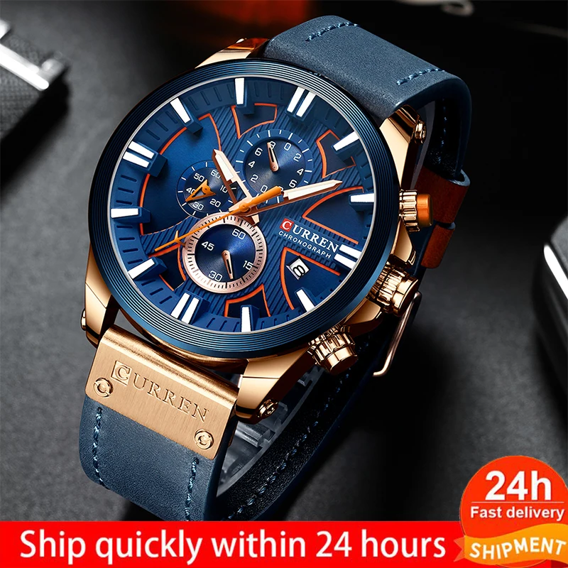 Мужские наручные часы CURREN Топ Бренд роскошные кожаные кварцевые часы модные наручные часы с хронографом мужские спортивные военные часы Модные Роскошные простые мужские часы, топ бренды, ориентированные на мужские часы. Мужские кварцевые часы, 30 м водонепроницаемые, подходят для деловых и повседневных видов спорта Быстрая доставка, изысканная упаковка, Лучший подарок для мужчин, подходит для рождества, дня отца, Дня Святого Валентина, свадьбы и т. д.
