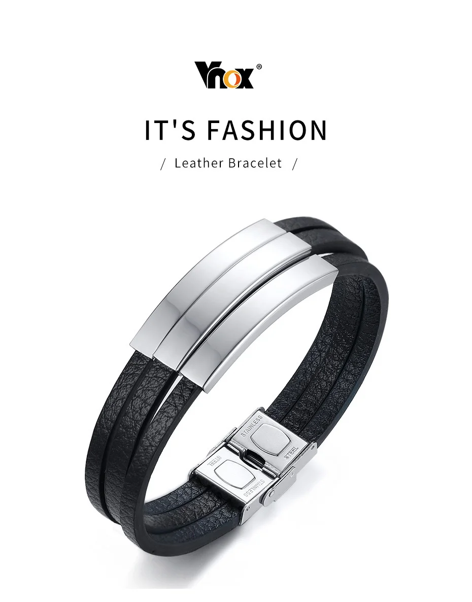 Мужские Многослойные черные кожаные браслеты Vnox, персонализированные браслеты с надписью Love Friendship, Подарки для него на заказ