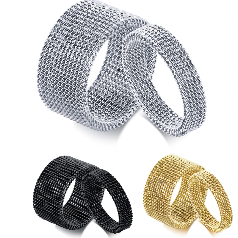 Модные унисекс эластичные сетчатые кольца из нержавеющей стали, круглые тканые сетчатые кольца для мужчин и женщин, Подарочные Кольца для друзей