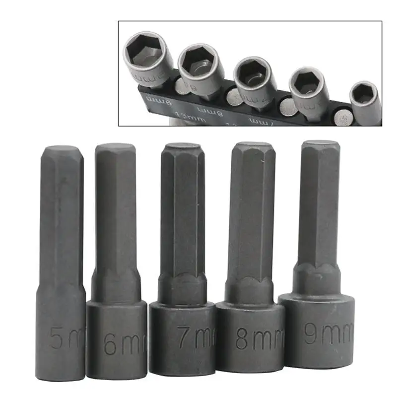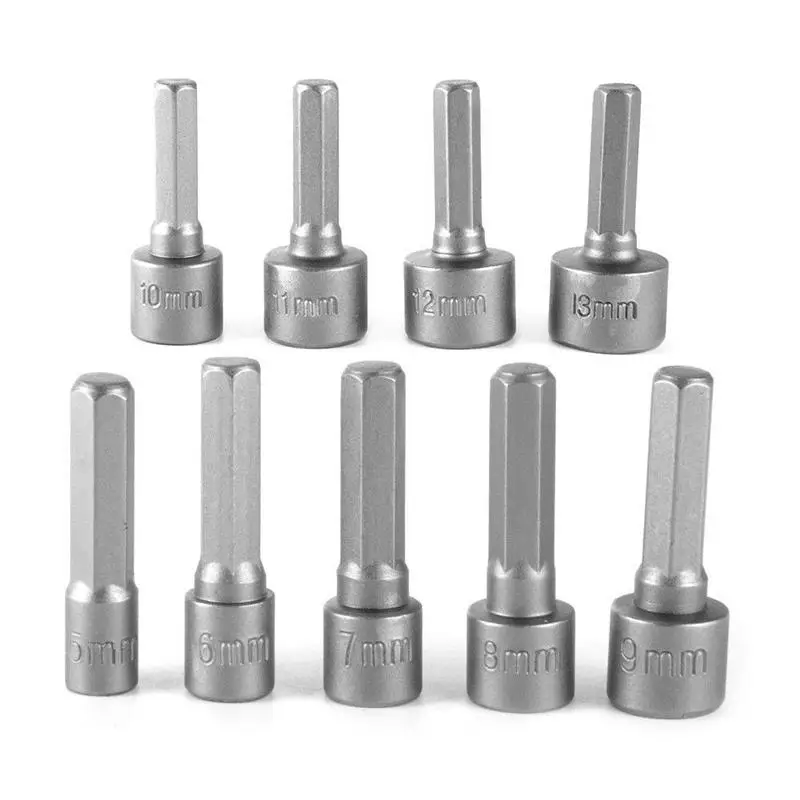 Метрические насадки для шуруповерта, 5-13 мм, 9 шт., ударные насадки для сверл, 14 дюйма, набор инструментов с шестигранным хвостовиком, Набор отверток для гаек