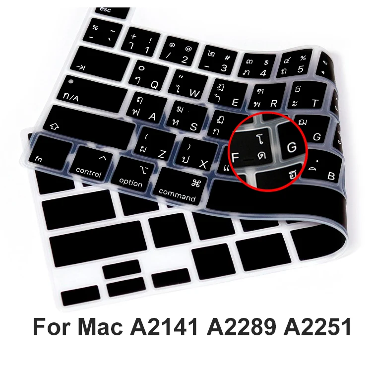 Черная Силиконовая накладка на тайскую клавиатуру HRH, американская версия для MacBook New Pro 16 2019 A2141 M1 Chip A2338A2251A2289 2020 +