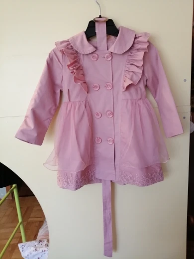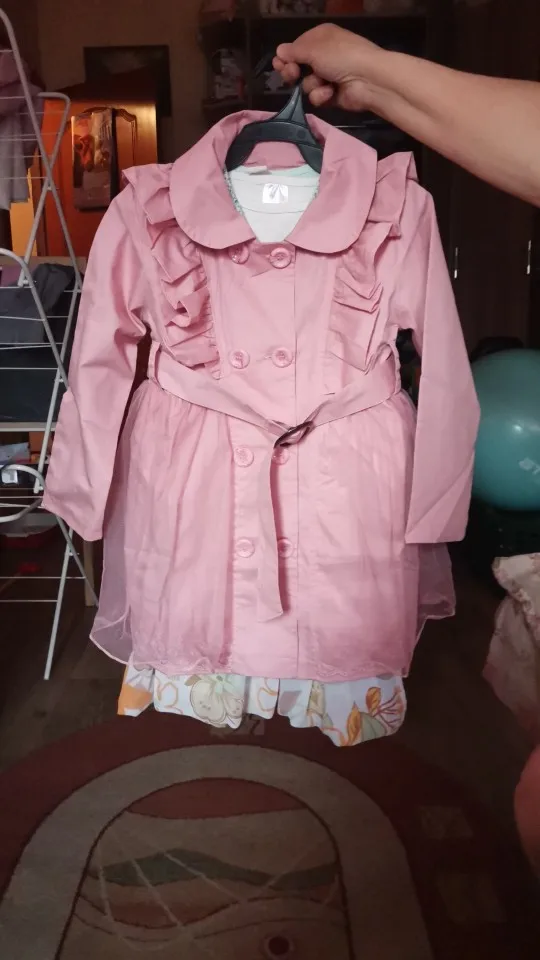 Отличное пальто, тоненькое. Прошито хорошо.цвет пепельная роза, заказала 4т,на 104 большевато. Но я и брала на вырост