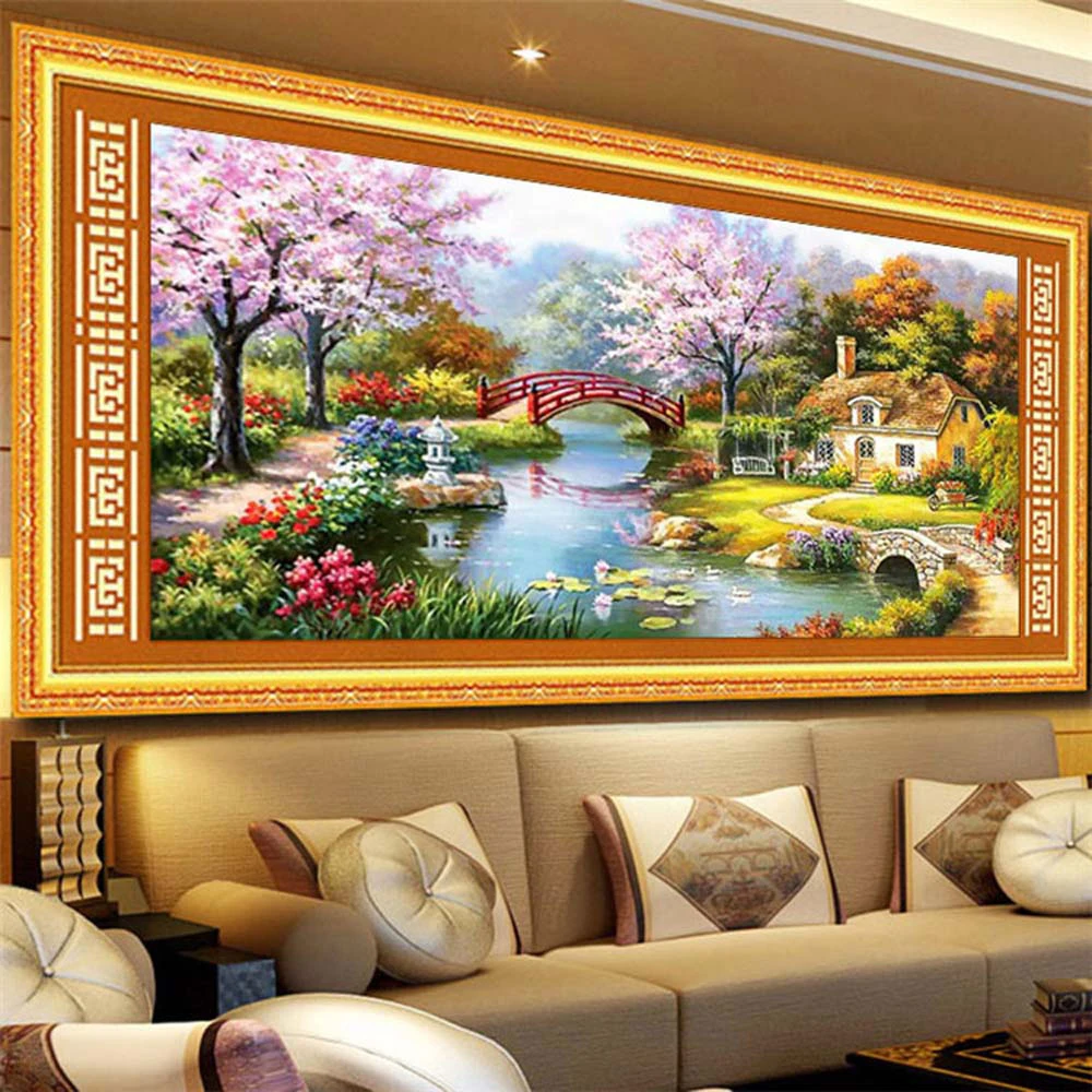 2020 вышивка крестиком, перекресная строчка, фэнтези усадьбе Гостиная Спальня вилла Пейзаж большой европейский стиль декоративная живопись