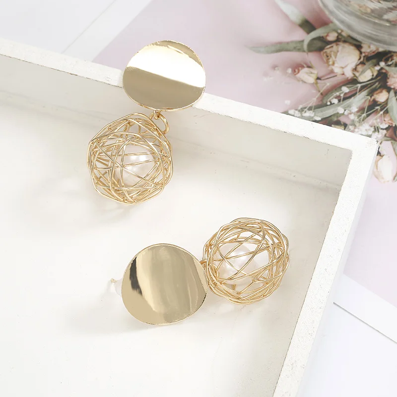 Простые модные геометрические большие круглые серьги-клипсы с золот...