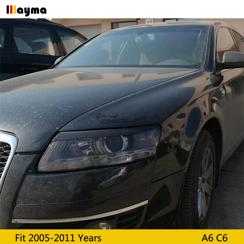 Наклейка на фары автомобиля из углеродного волокна, для Audi A6, C6, 2005, 2006, 2007, 2008, 2009, 2010, 2011 года