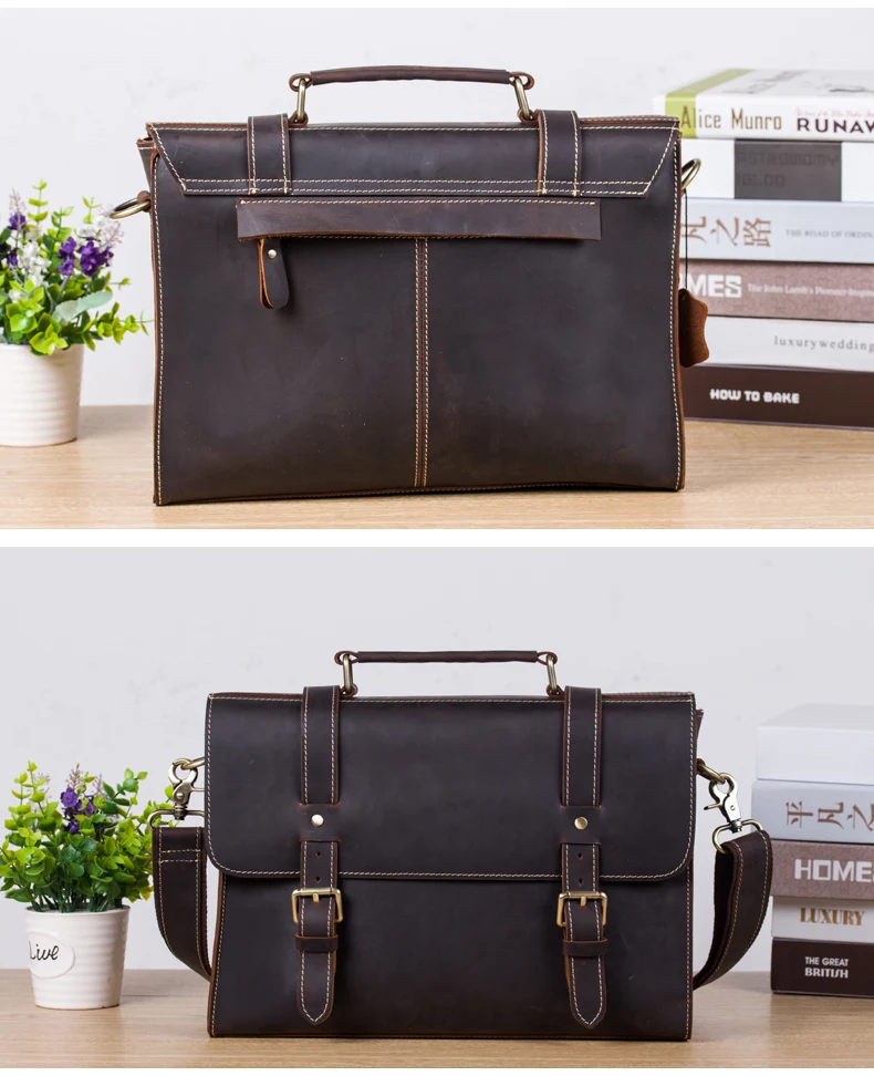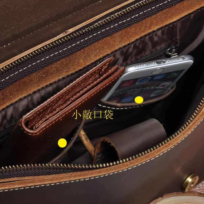 Топ портфель класса Мужской винтажный настоящий Crazy Horse кожаный...