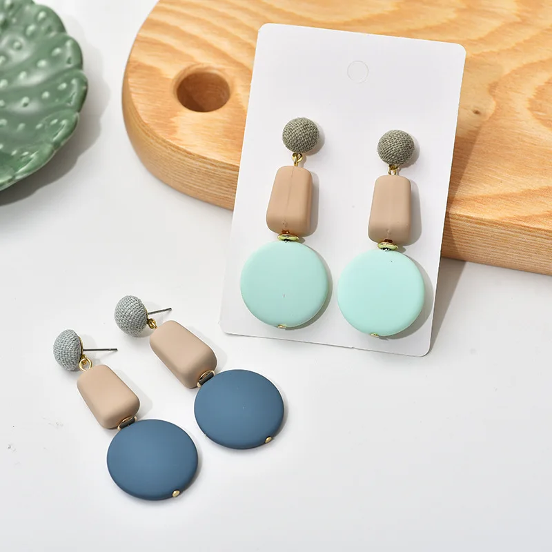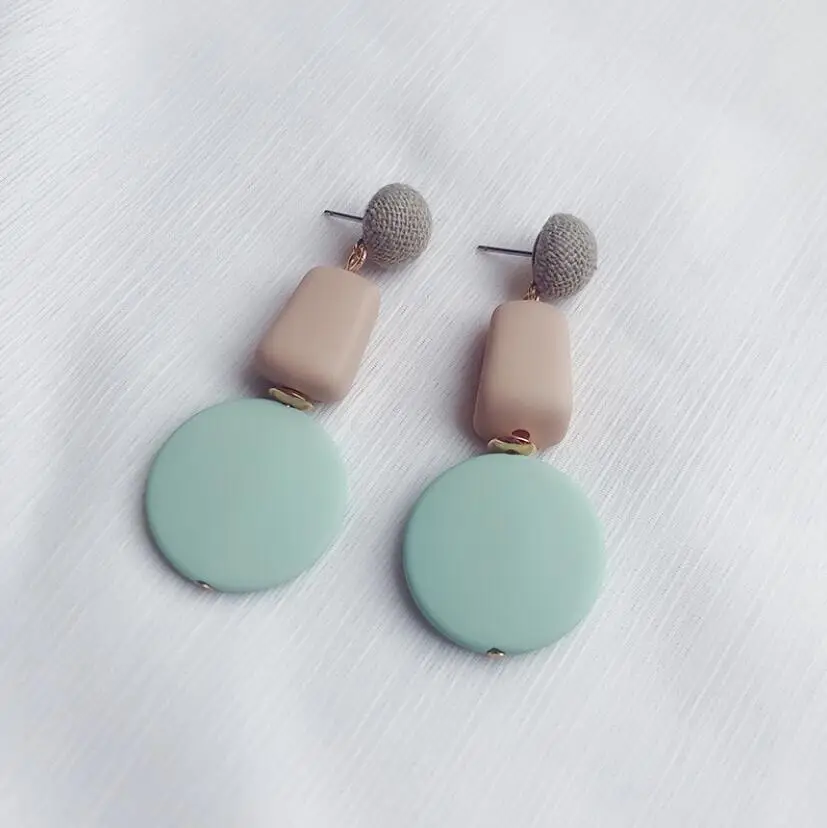 Корейские милые Квадратные круглые длинные серьги с подвеской в виде диска, тканевые теплые цветные массивные серьги, модные ювелирные изделия 2020, новый дизайн