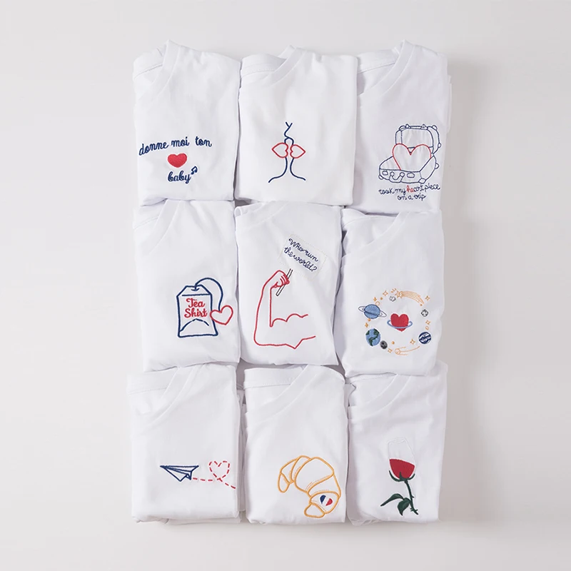 2020 Летняя женская белая футболка с ручной вышивкой, футболка с коротким рукавом, топы