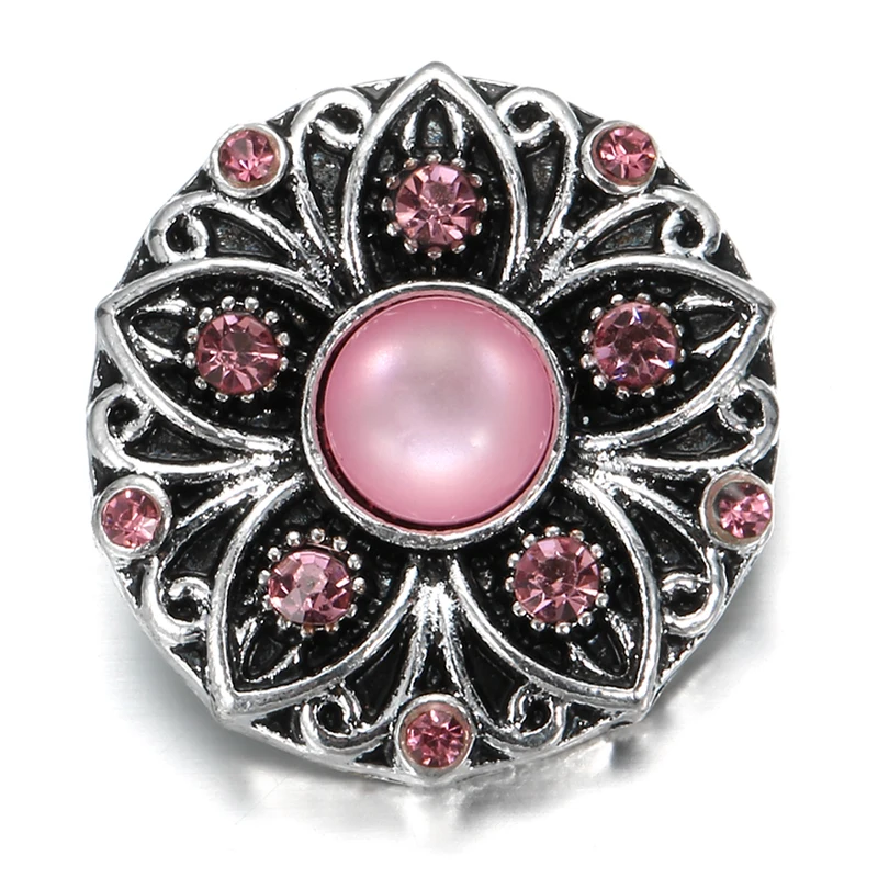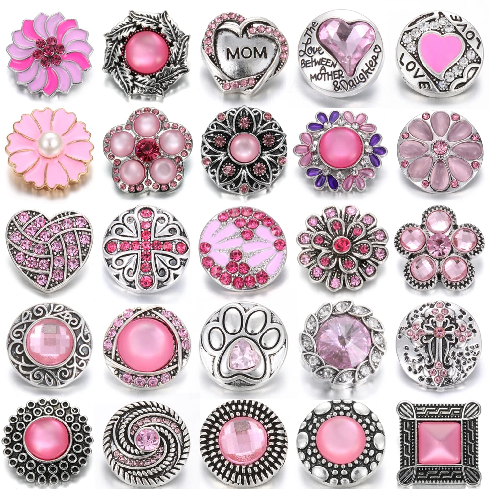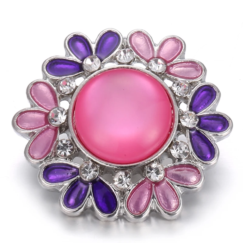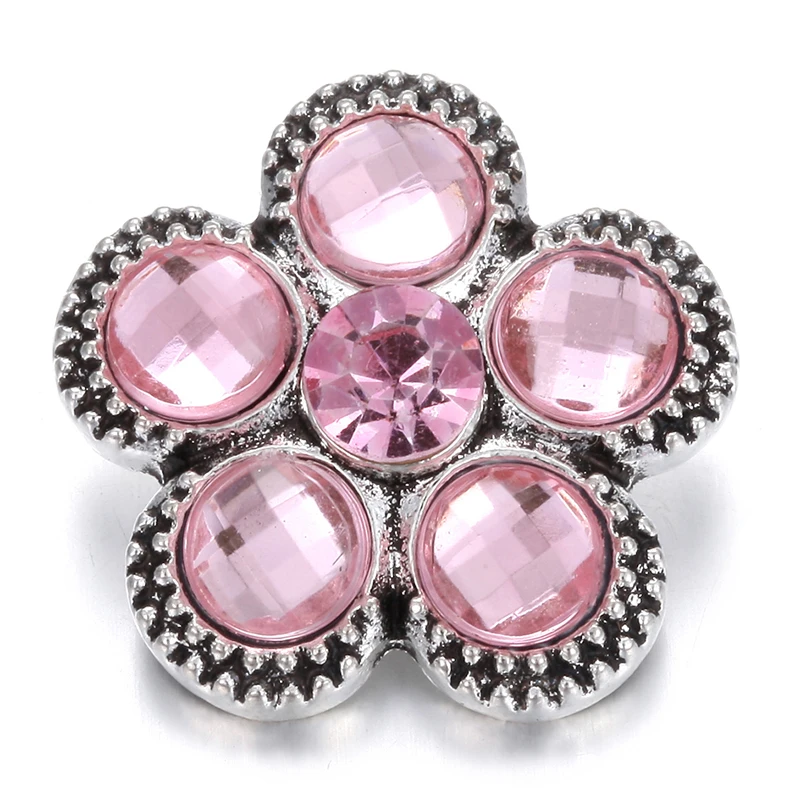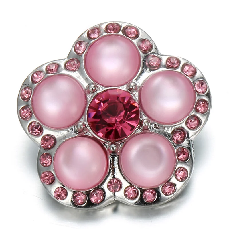 6 шт.лот, новые ювелирные изделия, 18 мм, кнопки, розовые кристаллы, стразы, цветы, защелки, подходят для браслетов, Женские Ювелирные изделия