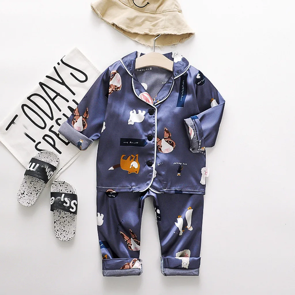 Топы с рисунками животных для маленьких мальчиков и девочек + штаны, пижамы, одежда для сна