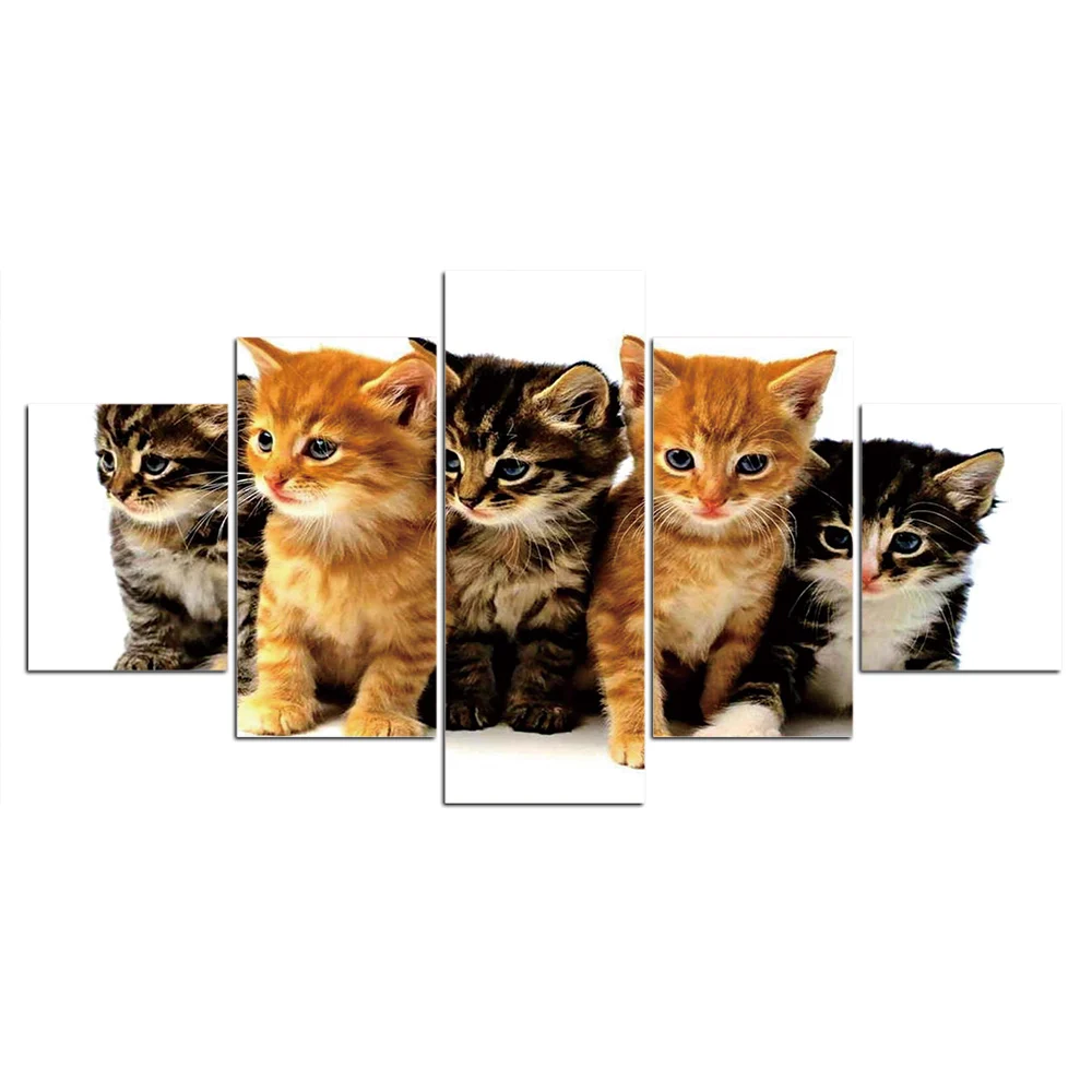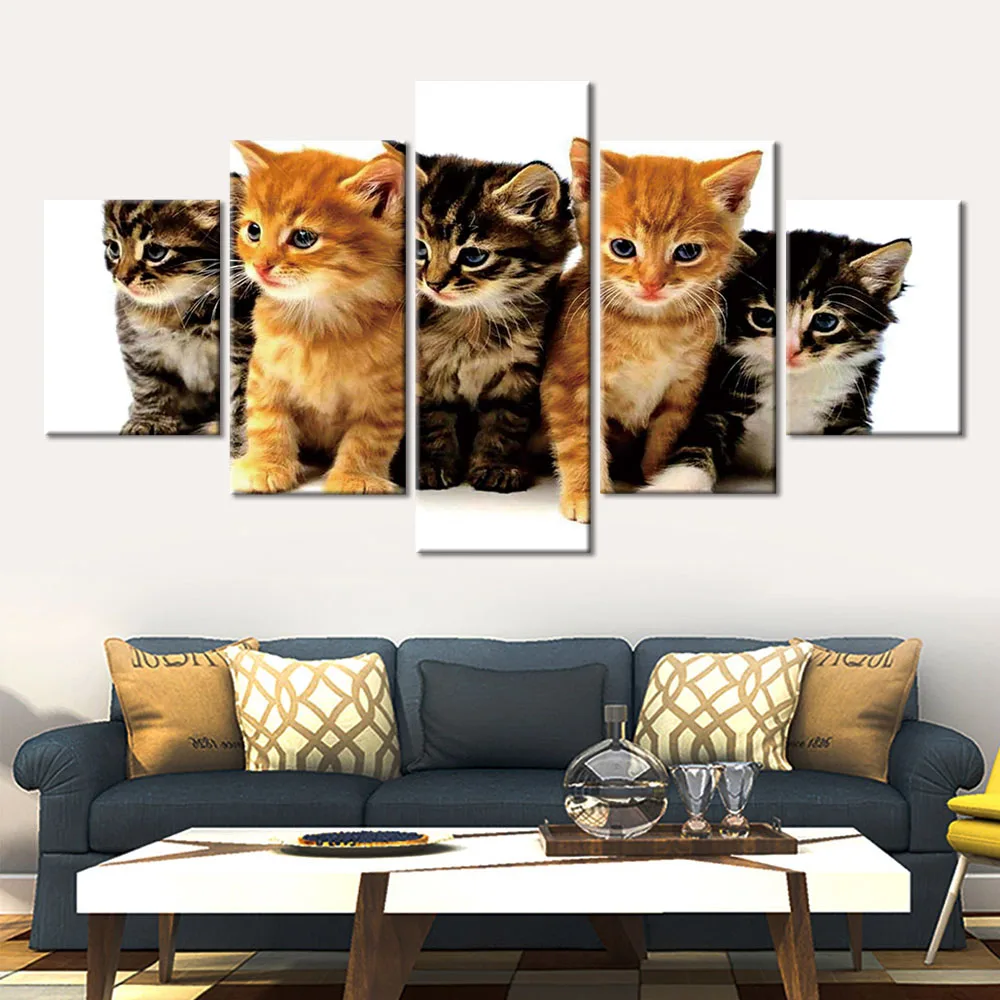 Модульные картины, украшение для дома, настенное искусство, холст, постер с милым котом, 5 шт., картина с HD-печатью