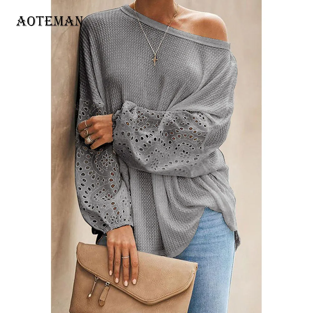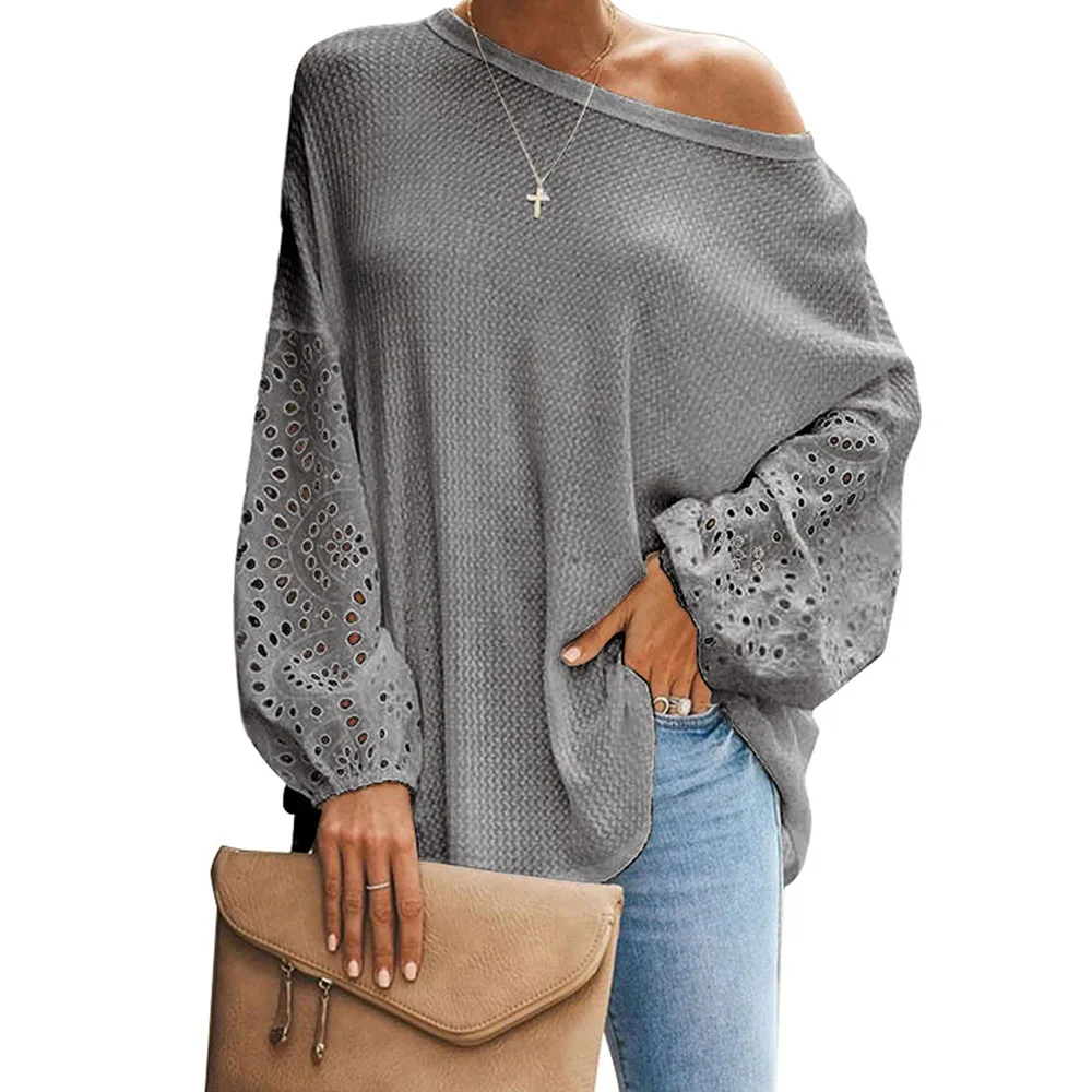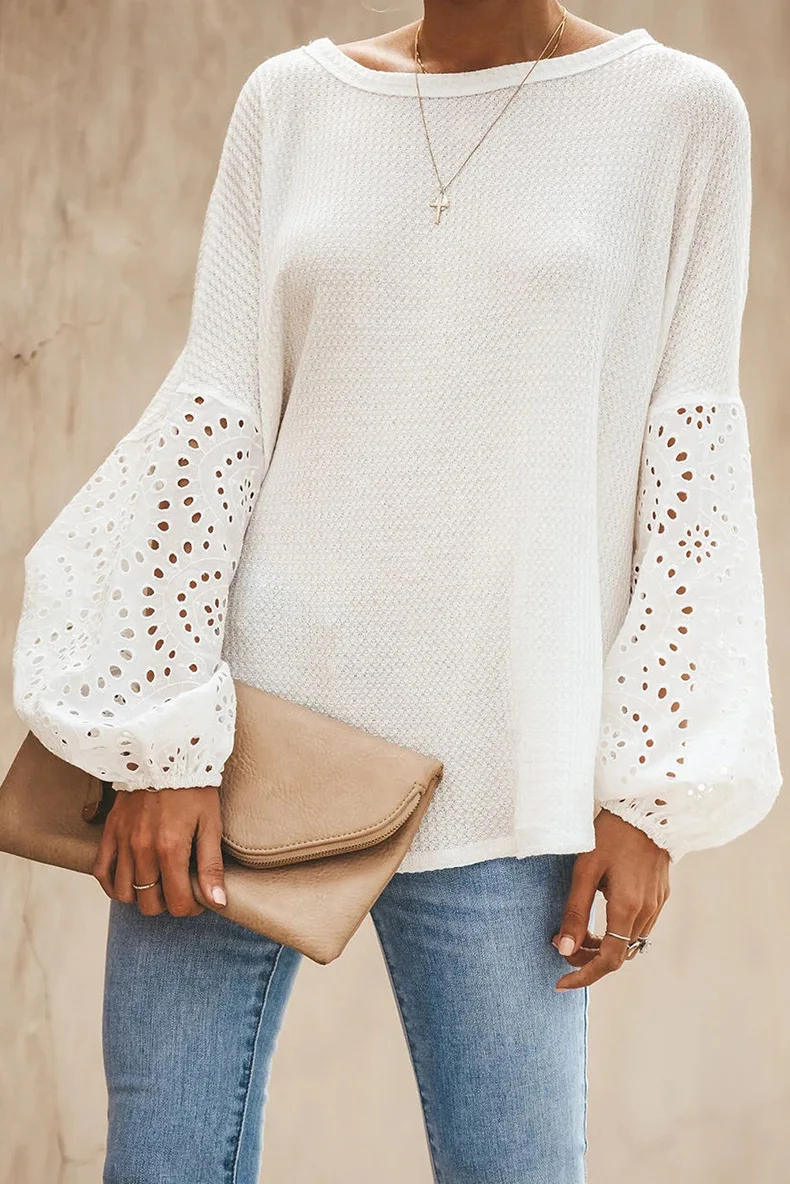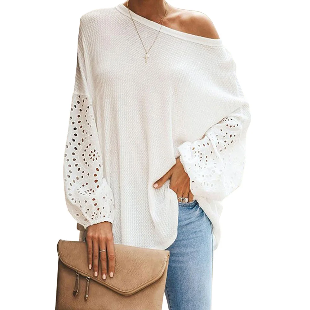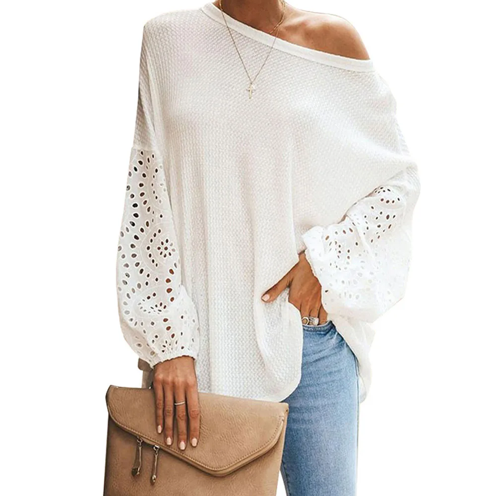 Сезон весна-лето; Женские мокасины с блузка рубашка 2020 на каждый день с круглым вырезом и расклешенными рукавами лоскутные Кружевные блузы mujer de moda обувь женские топы