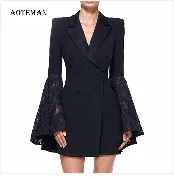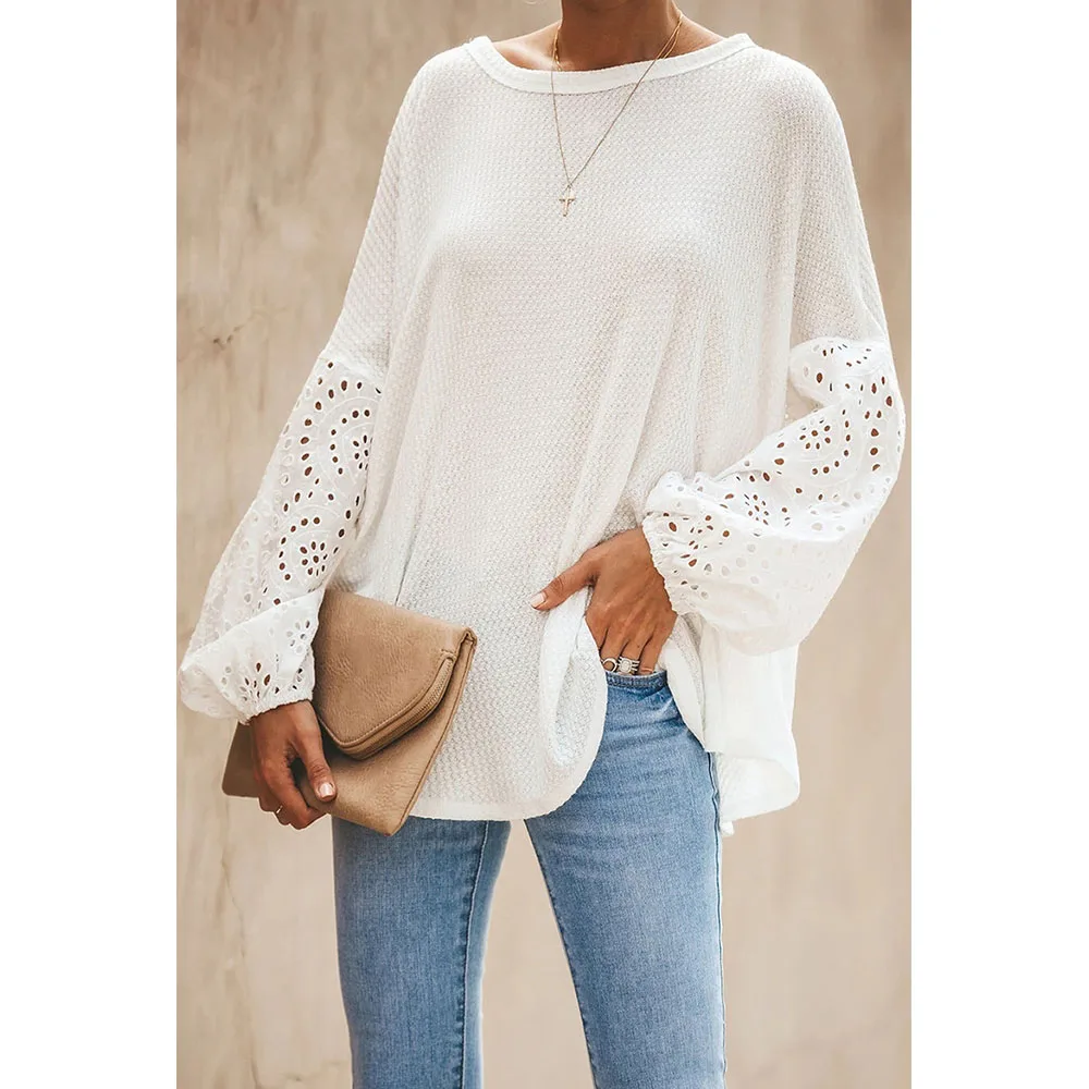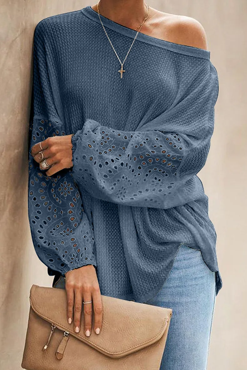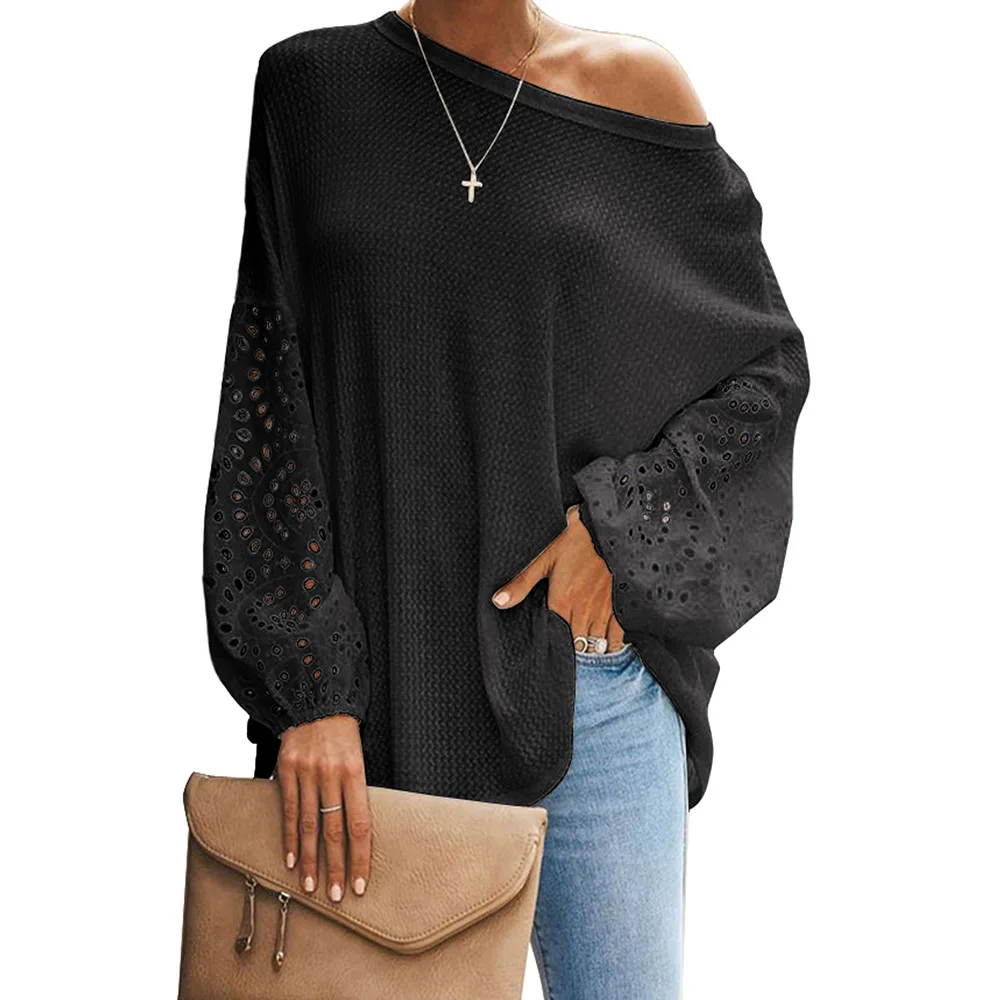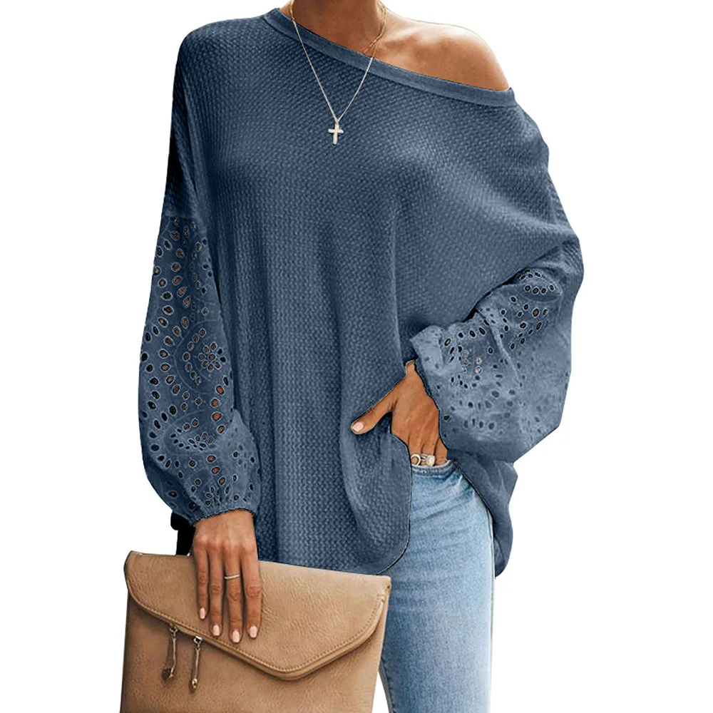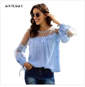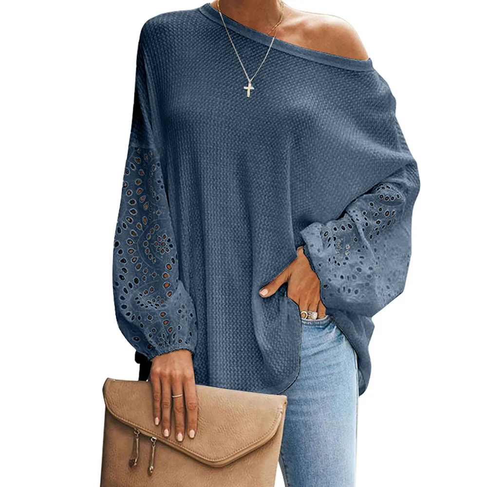 Сезон весна-лето; Женские мокасины с блузка рубашка 2020 на каждый день с круглым вырезом и расклешенными рукавами лоскутные Кружевные блузы mujer de moda обувь женские топы
