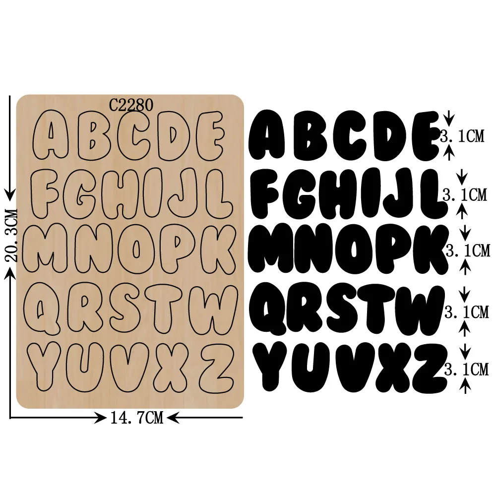 Новая деревянная высечка для скрапбукинга с буквенным принтом, высечки для скрапбукинга, высечки разных размеров