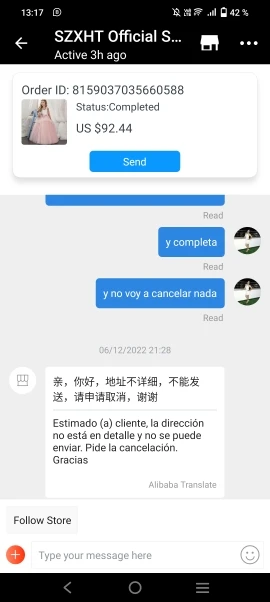 Остерегайтесь этого вора. Все публикации этого продавца являются ложными. У него нет продуктов, которые они публикуют. Я купил 5 платьев, и он прислал мне 1 шарф. Продавец просит отменить заказ, и если вы не отмените его, он отправляет вам 1 обложку. Я сделал 4 заказа почти 90 долларов каждый, и во всем они прислали мне 1 шарф.