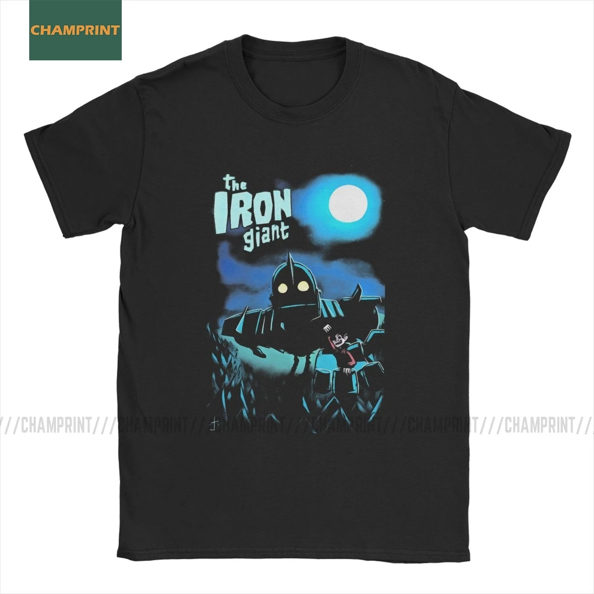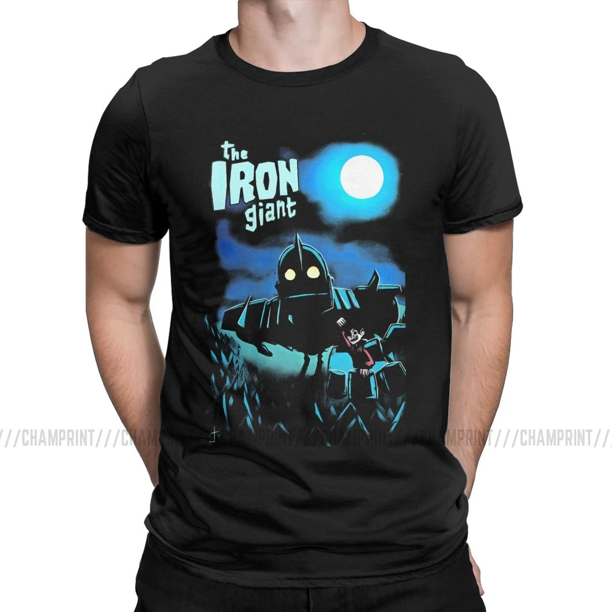 Футболка мужская с круглым вырезом, тенниска из чистого хлопка с героями мультфильмов роботов и анимаций, майка с коротким рукавом и надписью The Iron Giant, большие размеры