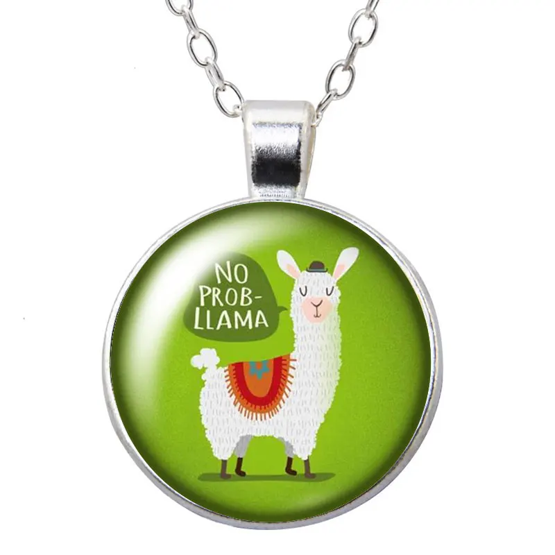 Ожерелье женское с круглым кулоном из альпака, 25 мм, стеклянный кабошон, серебристого цвета, 50 см