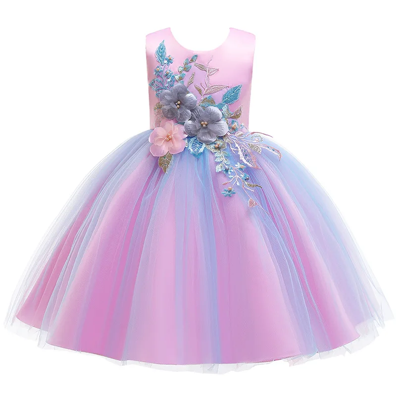 Платье для девочек с цветами 2022, элегантное платье принцессы, бал...