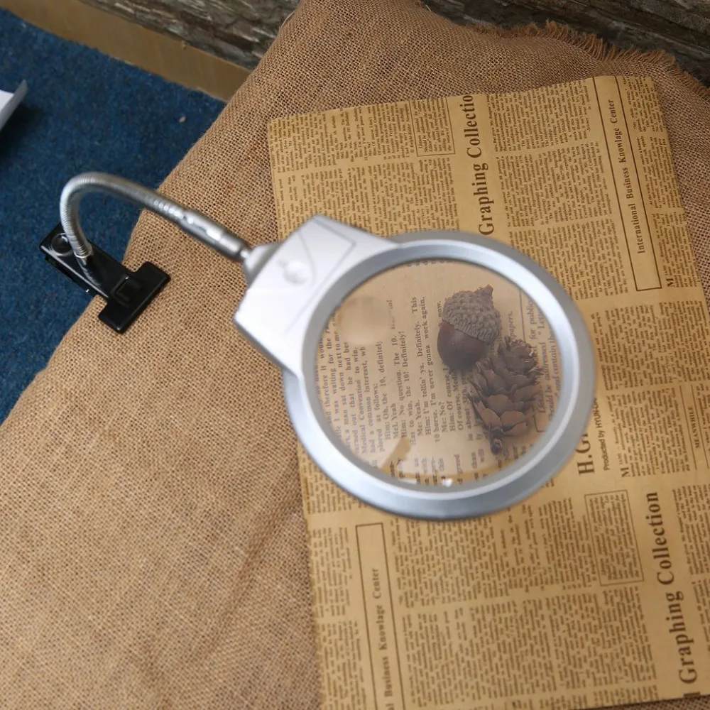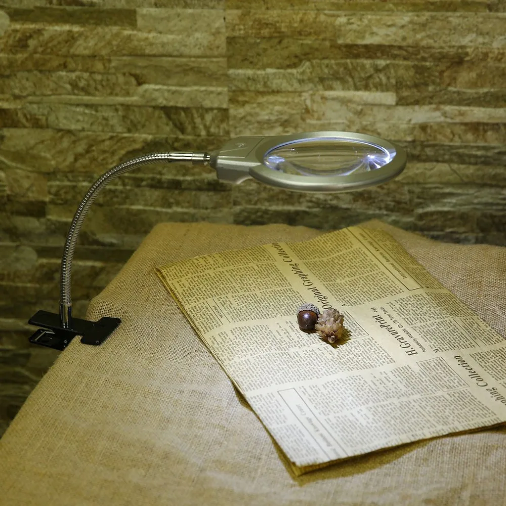 Металлический шланг Лупа 2,5X107 мм 5X23 мм светодиодный увеличительное стекло Настольная лампа для чтения светильник с зажимом